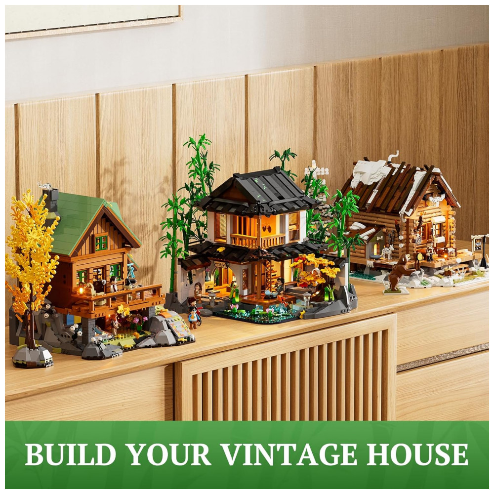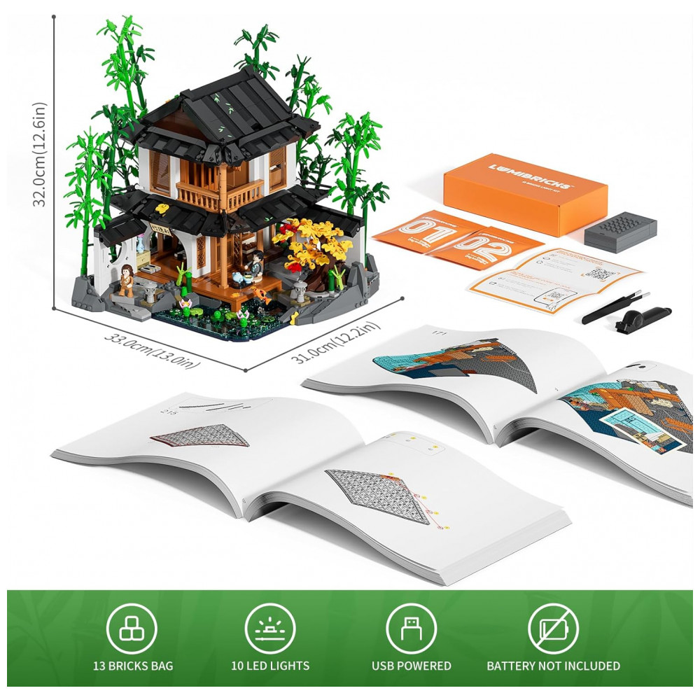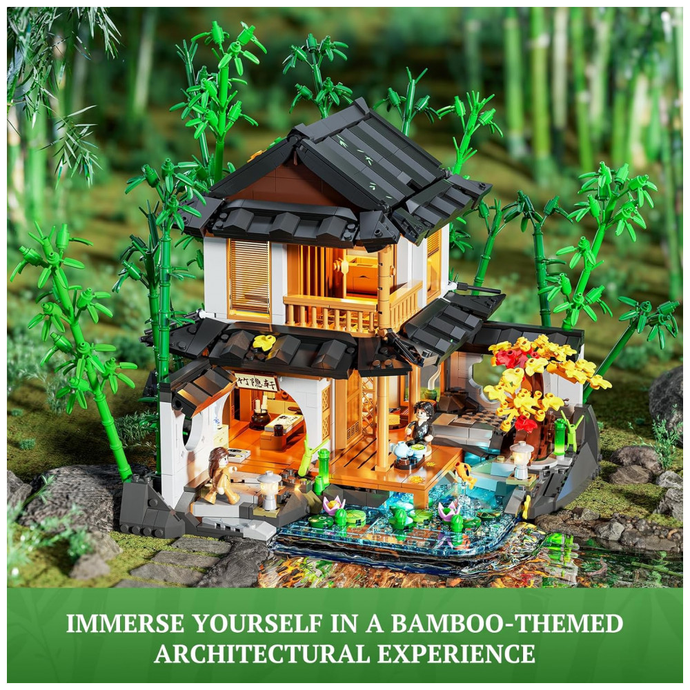 Conjunto de construção Lumibricks Bamboo House 2432 peças com iluminação LED e casa de bambu em estilo jardim chinês