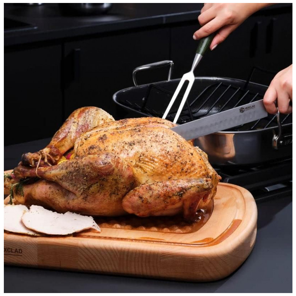 Conjunto de Faca e Garfo Lâmina de Aço Inoxidável Damasco HexClad