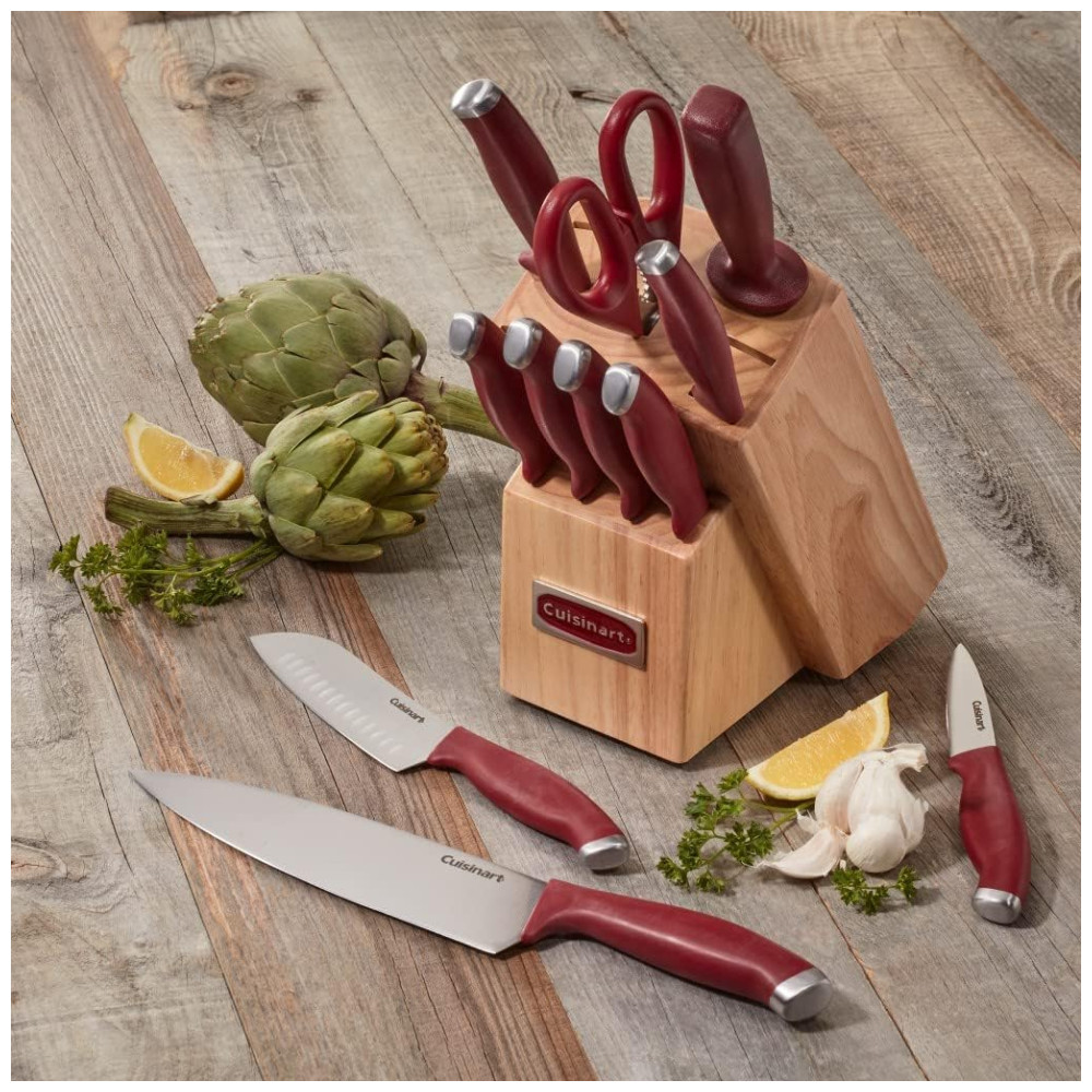 Cuisinart adiciona linhas, aparência e texturas inovadoras à sua coleção crescente de conjuntos de talheres. Novas superfícies de lâmina, alças texturizadas exclusivas e uma seleção de estilos de faca e de bloco permitem que os consumidores escolham ferramentas de corte superiores que se encaixam na decoração de sua cozinha, bem como em seus estilos pessoais de cozimento