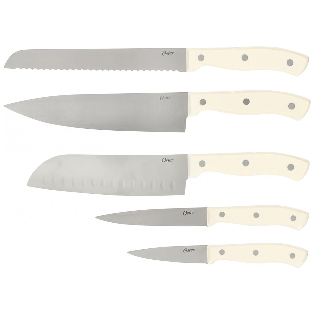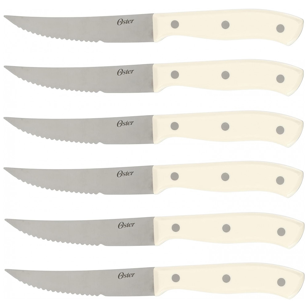 Conjunto de Facas 14 Peças com Lâminas em Aço Inoxidável e Alças em Linho Branco Oster Evansville