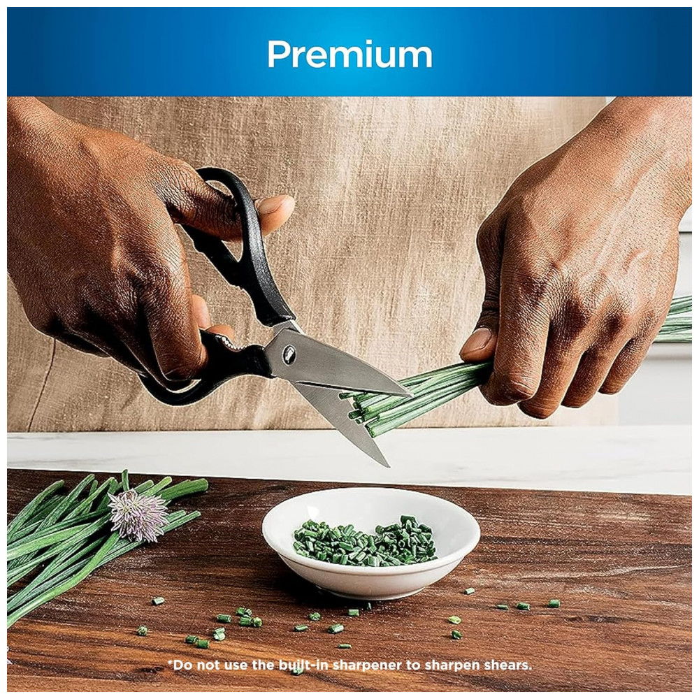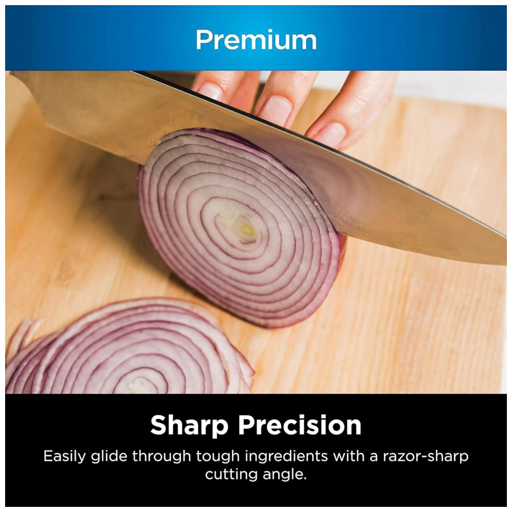 O destaque deste conjunto é o Afiador Embutido com Tecnologia NeverDull, que garante resultados de afiação profissional e mantém as lâminas afiadas como novas. O afiador é fácil de usar, com uma roda de afiação dinâmica que restaura a borda da sua faca para uma nitidez superior em segundos.