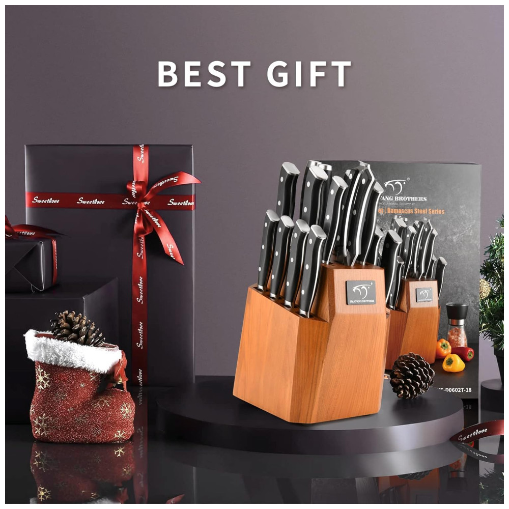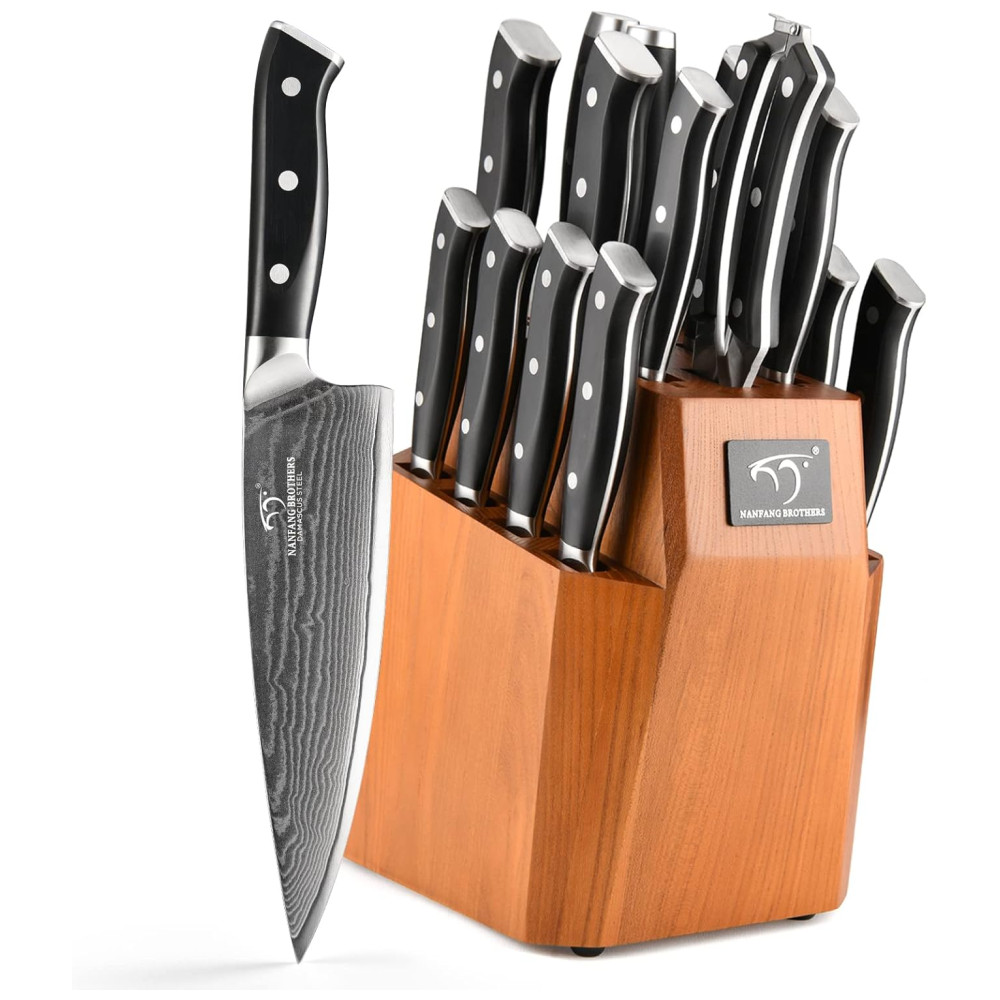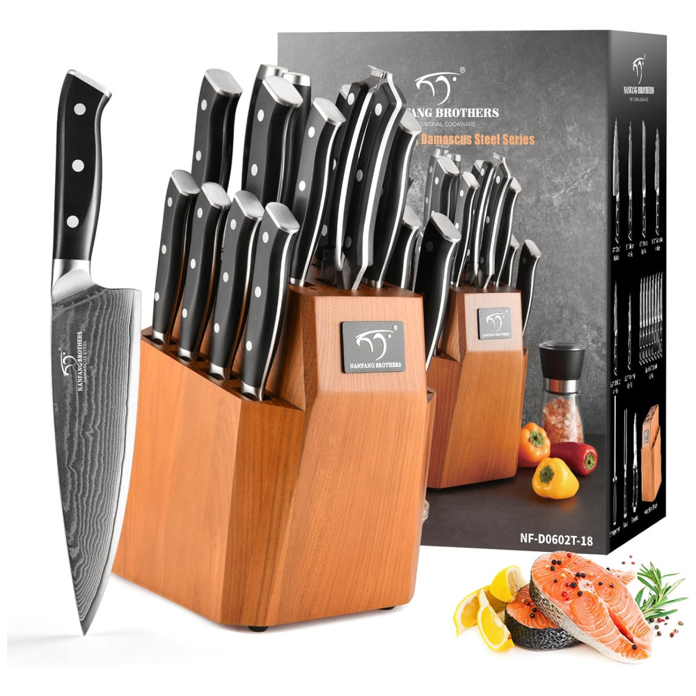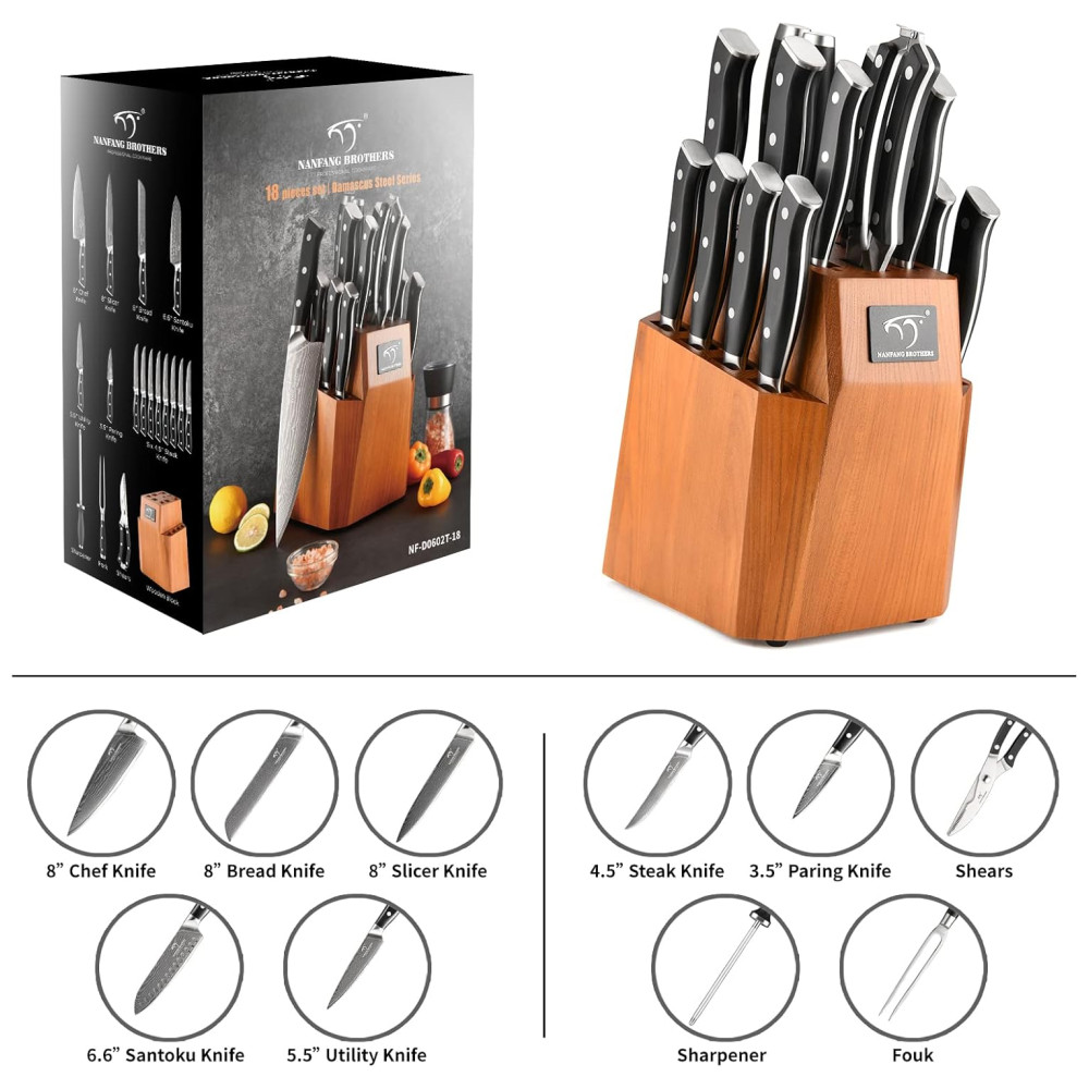 Conjunto de Facas com Bloco de Bancada com Afiador Embutido e Cabo Ergonômico 18 Peças NANFANG BROTHERS Preto