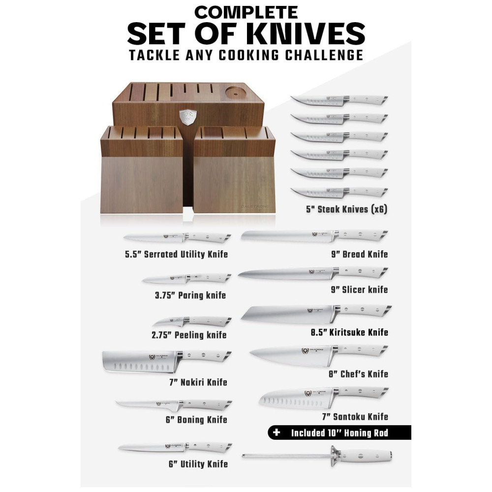 Conjunto de Facas com Bloco de Bancada e Cabo Ergonômico 18 Peças DALSTRONG Marrom