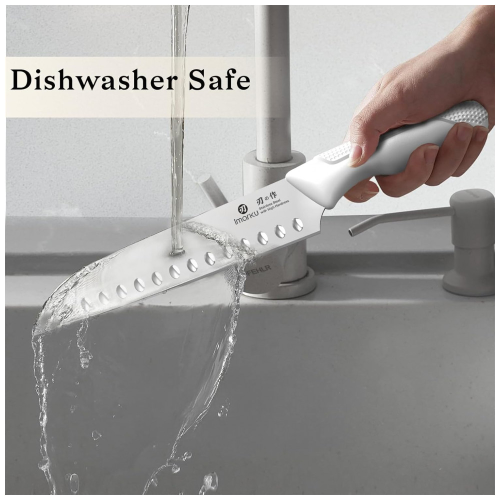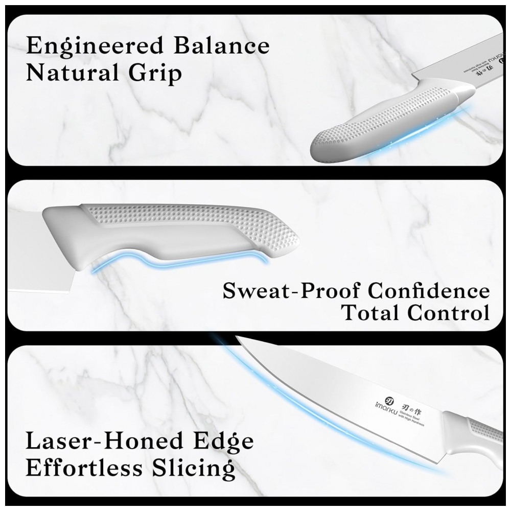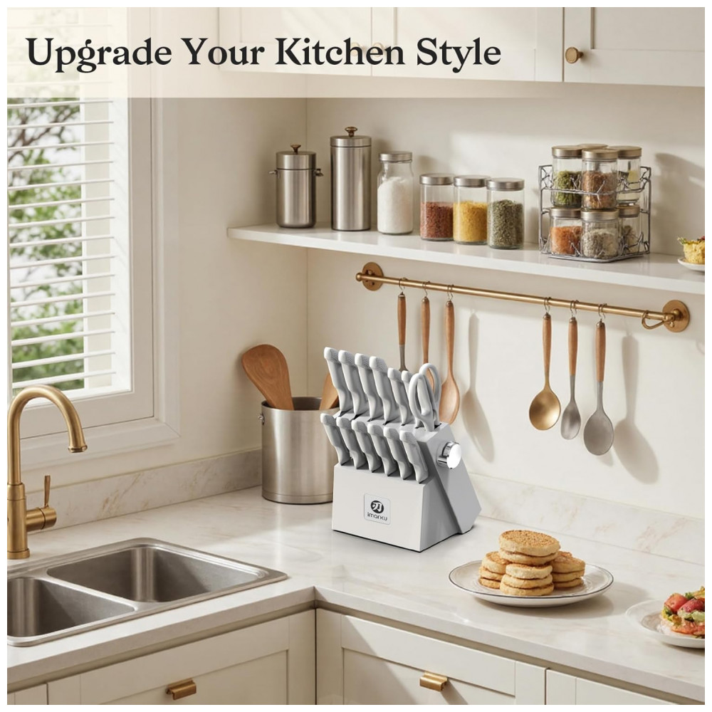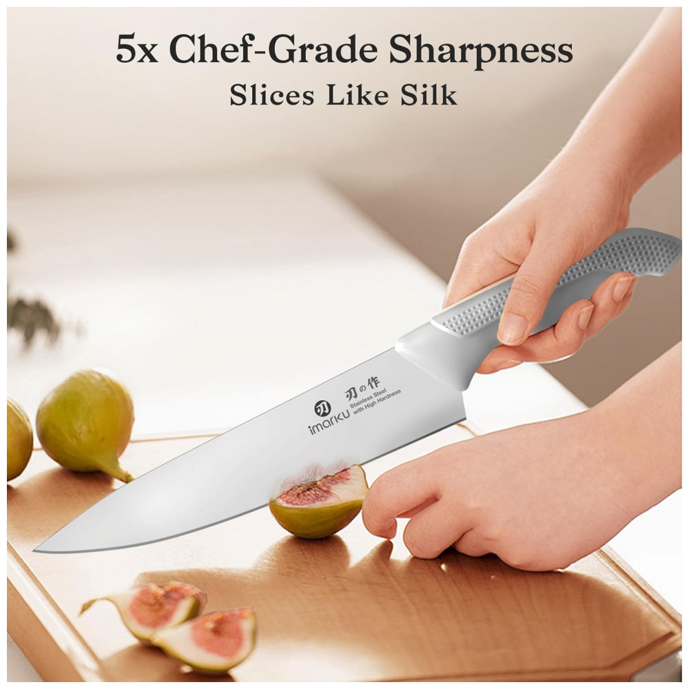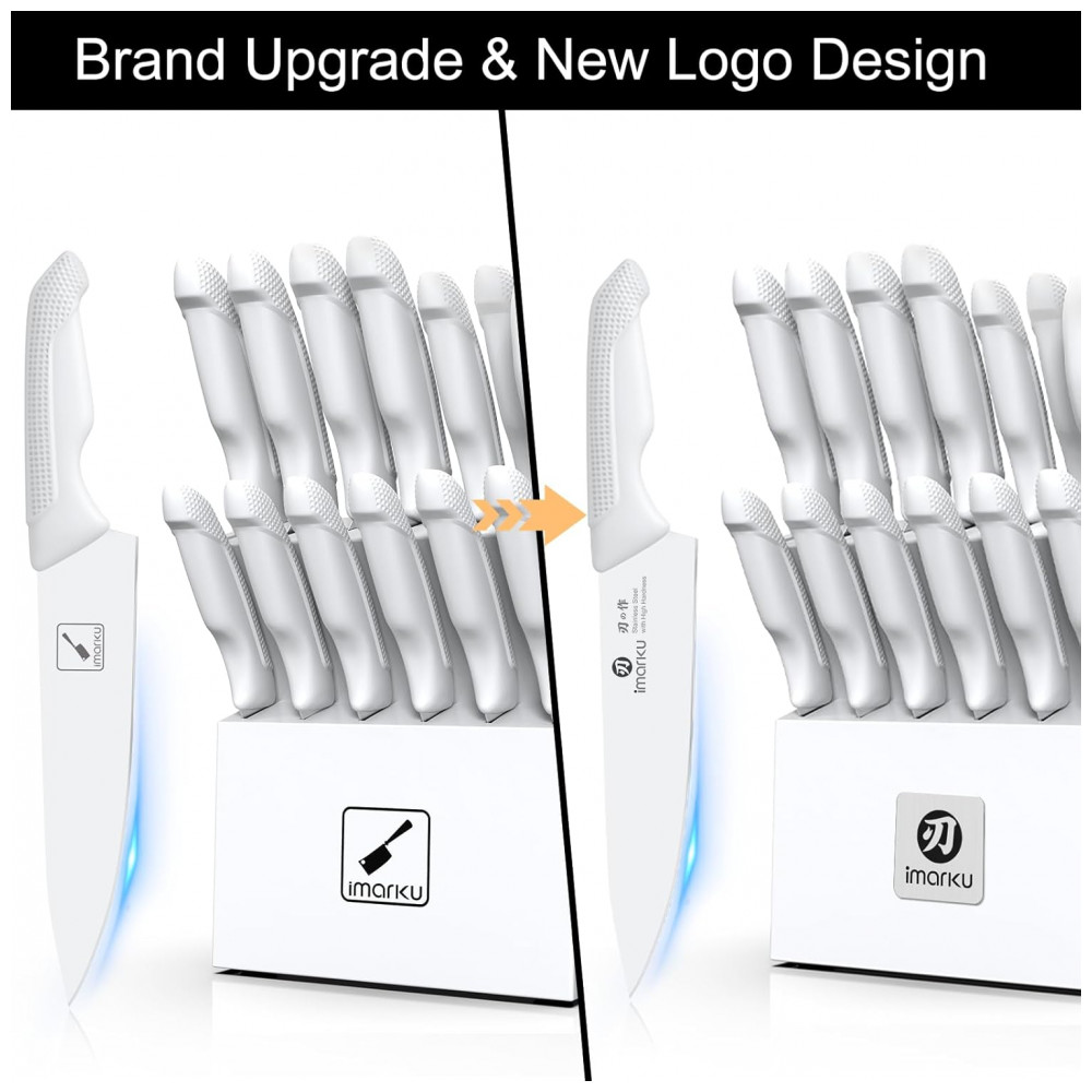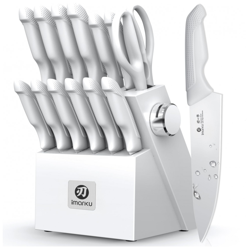 Conjunto de Facas de Cozinha imarku 14 Peças Branco Cinzento com Afiador Integrado e Cabo Antiderrapante