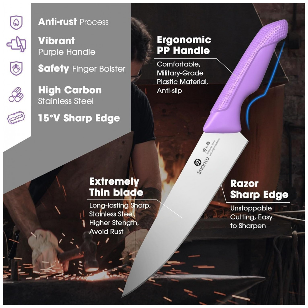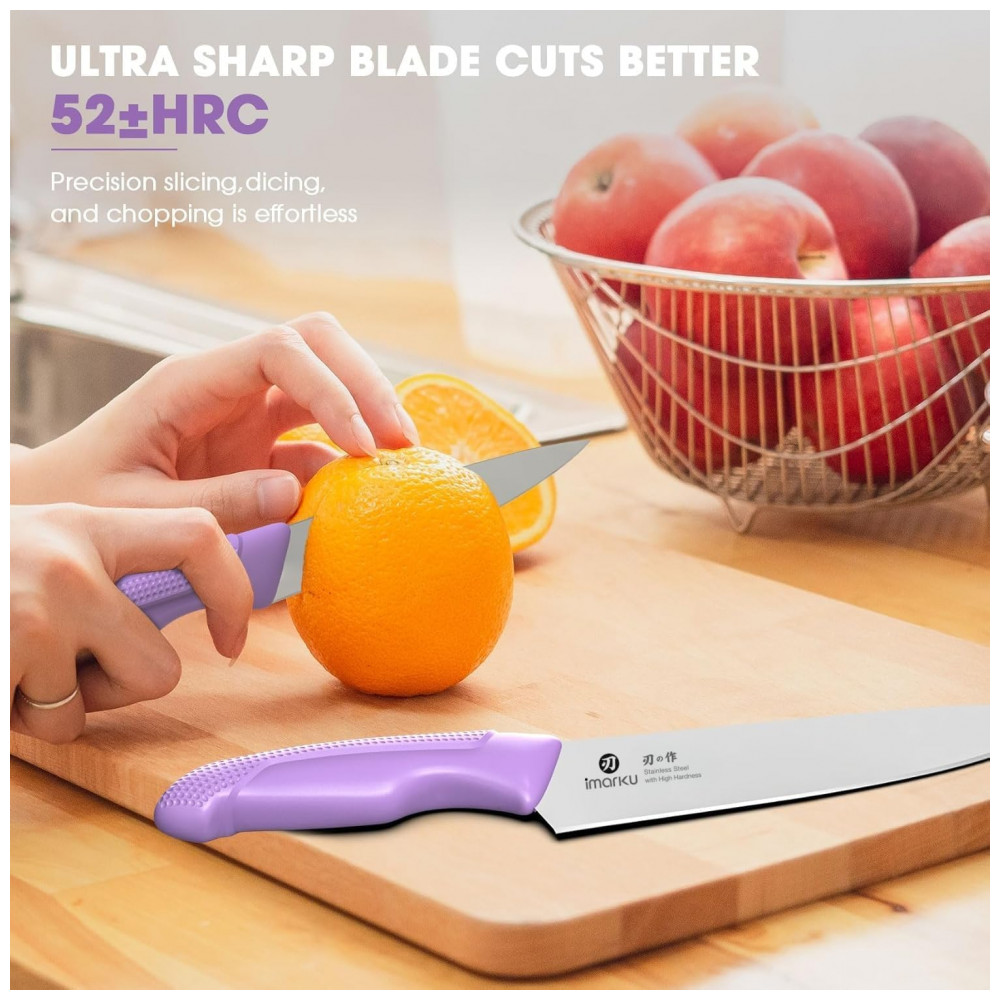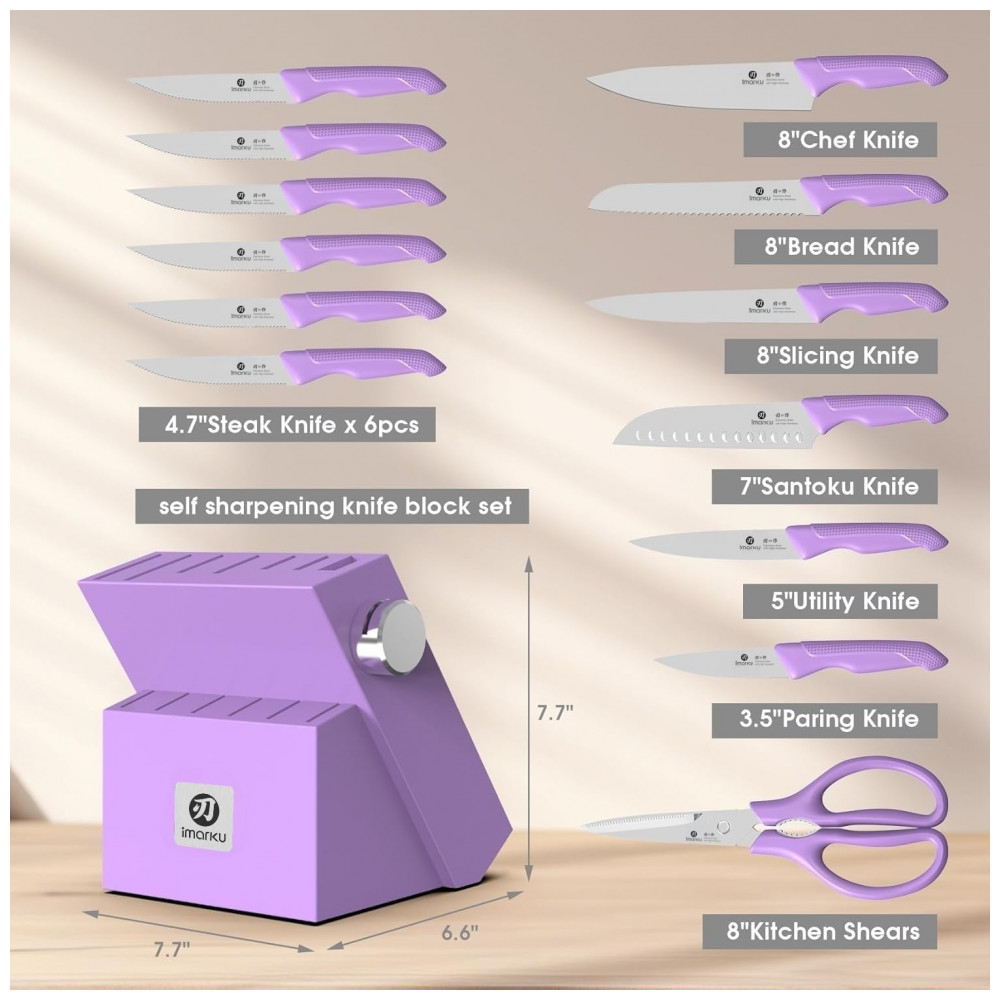 Conjunto de Facas de Cozinha imarku 14 Peças Roxo com Afiador Integrado e Bloco em Madeira