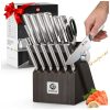 O conjunto de facas de cozinha imarku de 14 peças em aço inoxidável japonês oferece precisão em cortes com lâminas afiadas e construção forjada, ideal para uso doméstico ou profissional. Inclui bloco de madeira certificada FSC com afiador embutido para manutenção prática da afiação. O design ergonômico com cabo em polipropileno antiderrapante promove equilíbrio e reduz fadiga durante o preparo de alimentos.