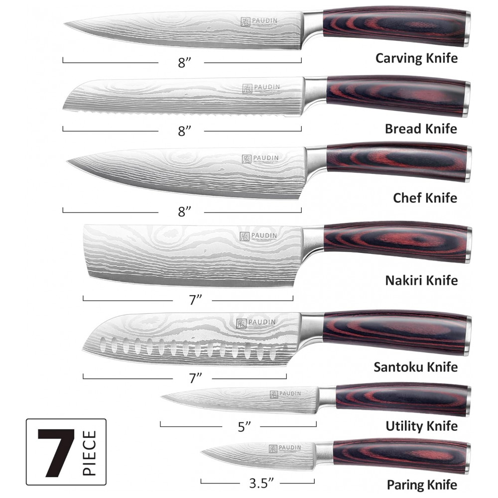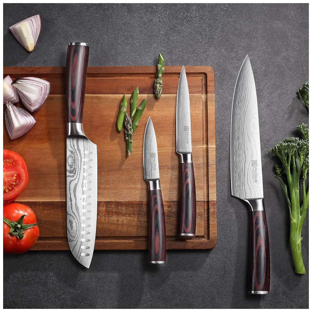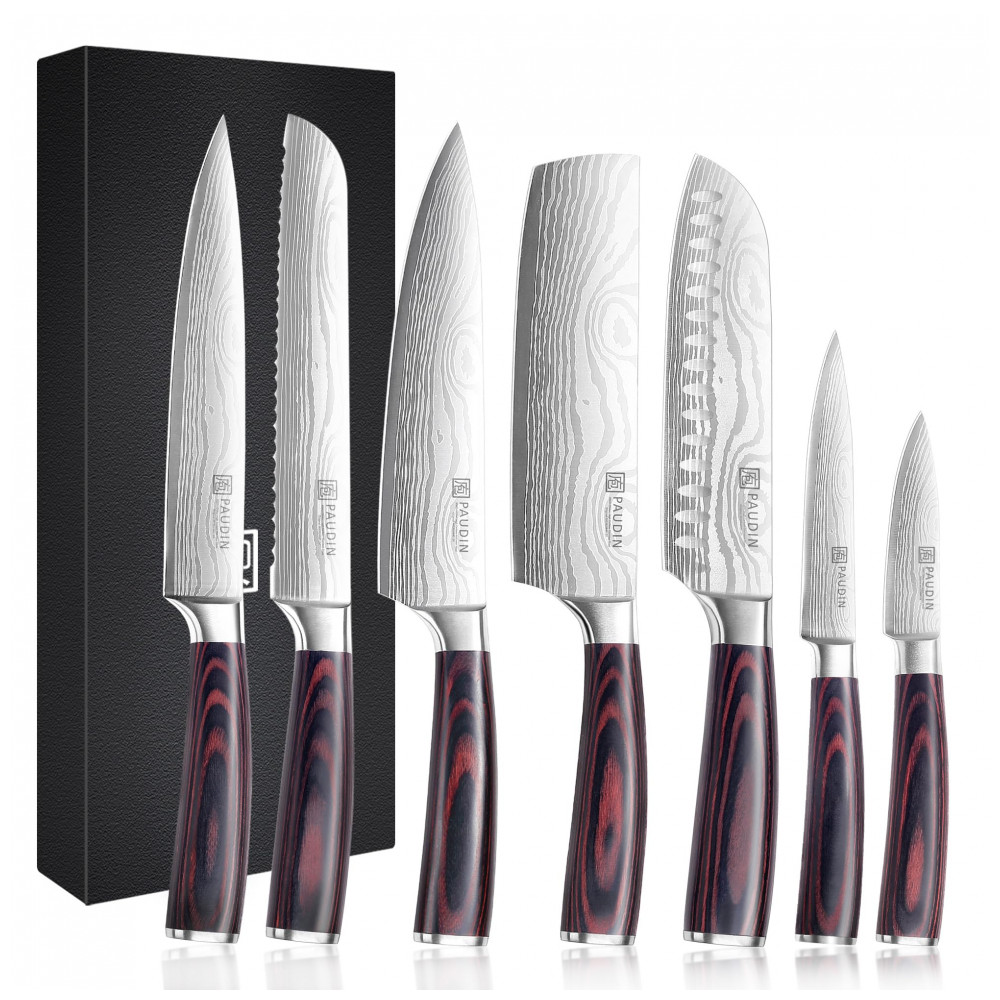 Conjunto de Facas de Cozinha PAUDIN 7 Peças Prata com Cabo Pakkawood e Aço