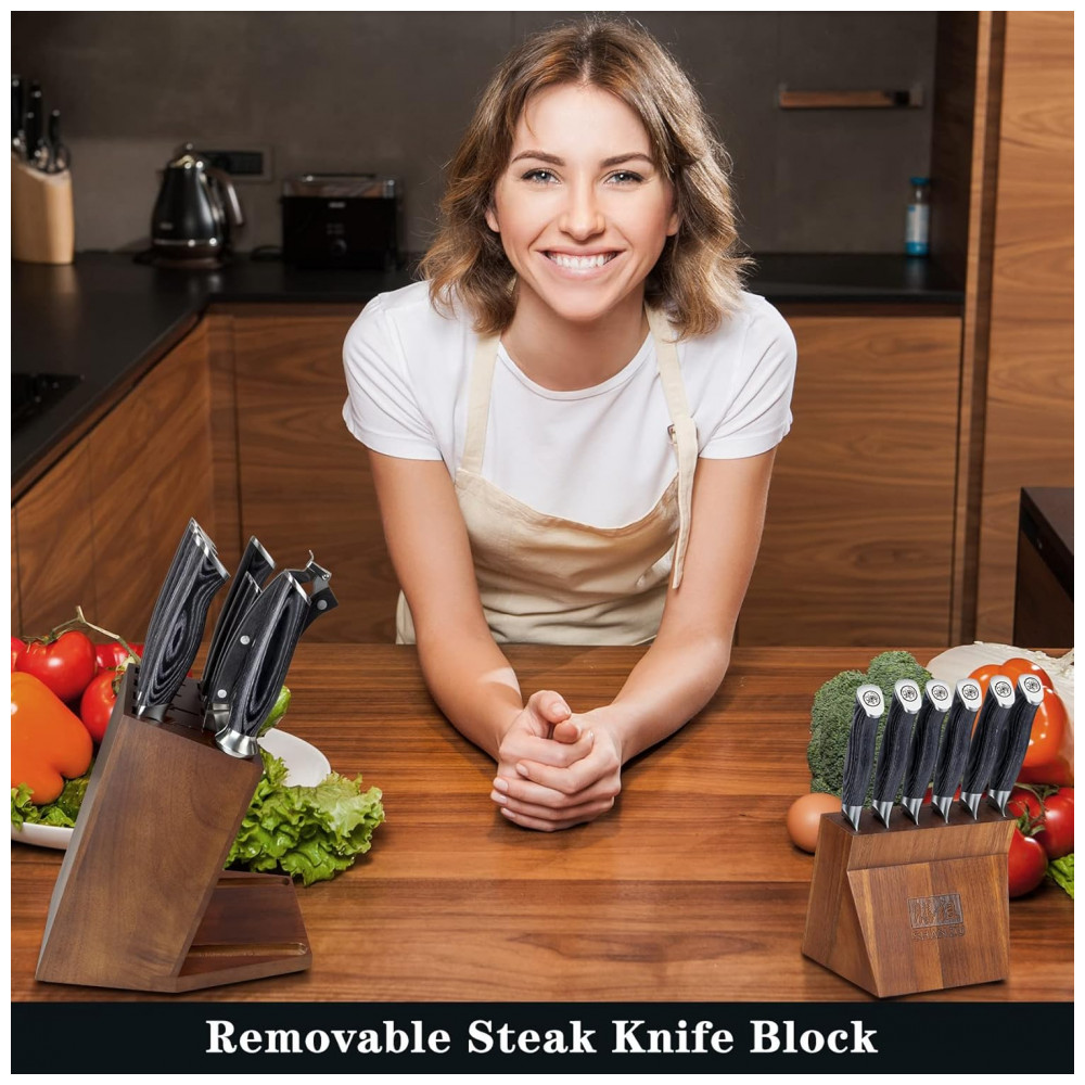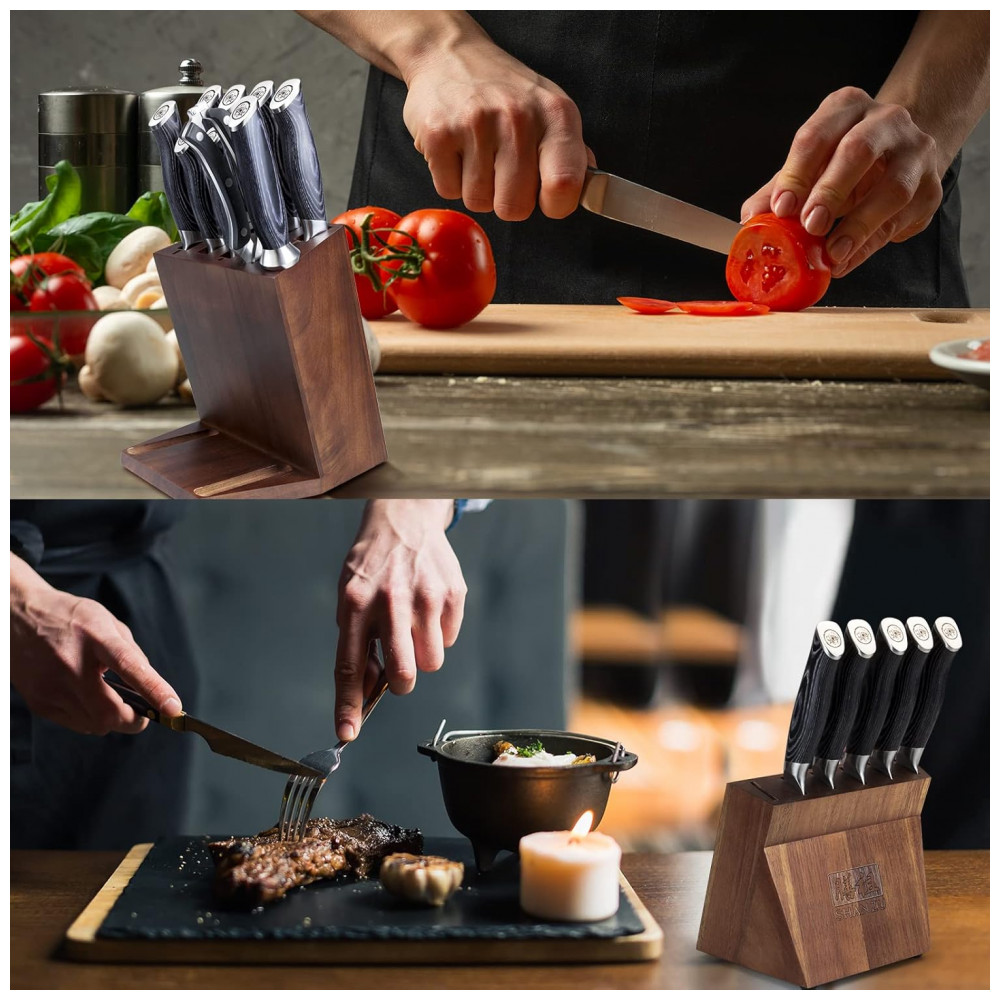 • Material do bloco: madeira de acácia (seção removível para facas bife)