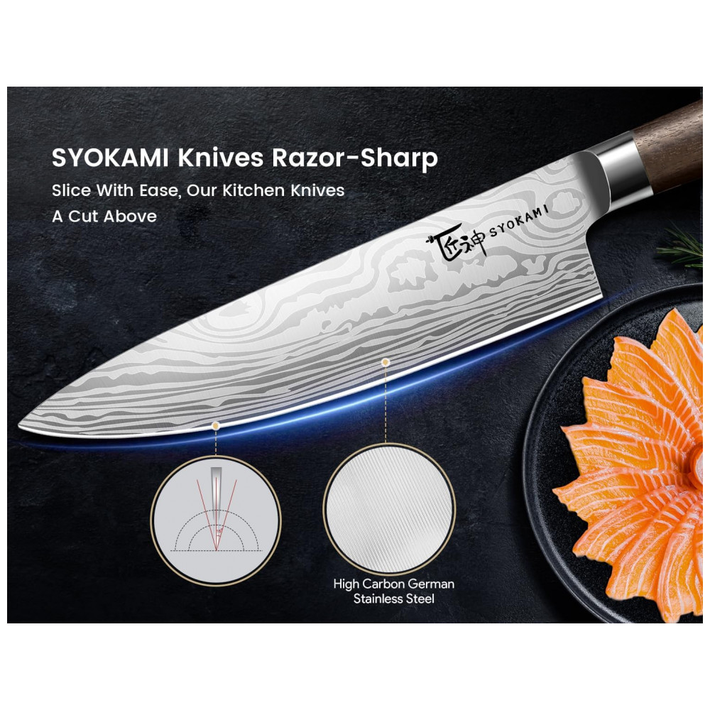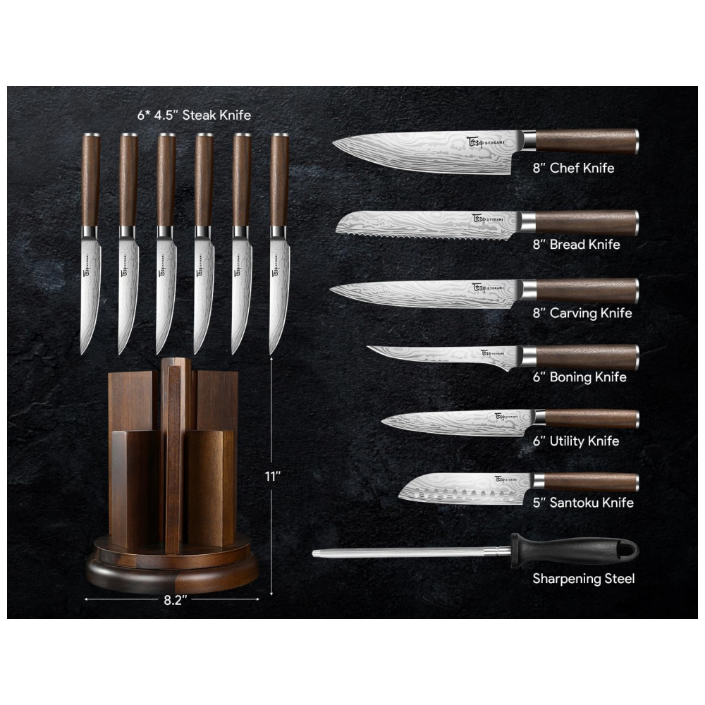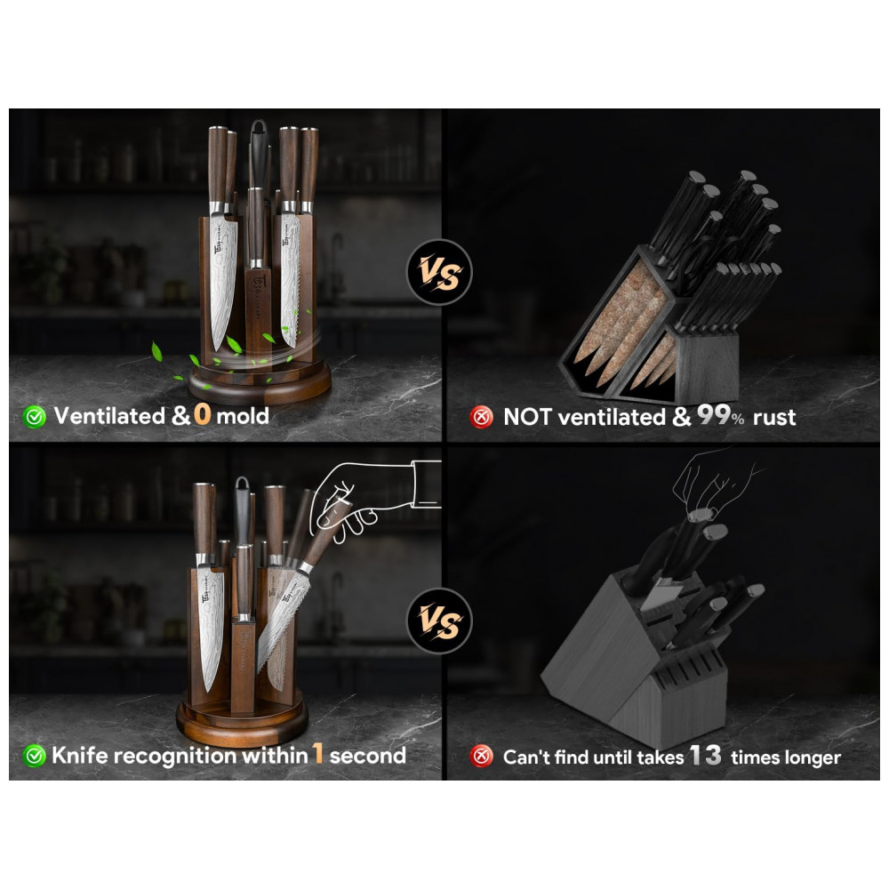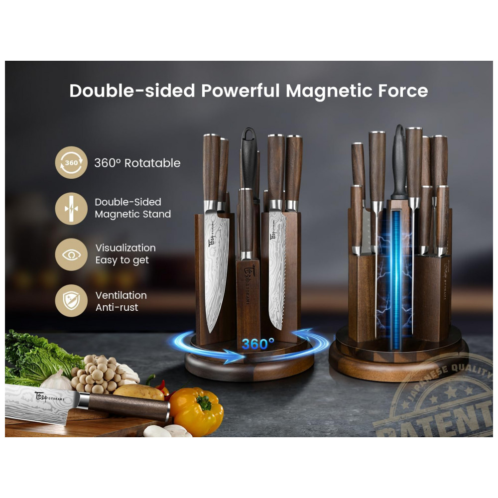 Conjunto de Facas de Cozinha SYOKAMI 14 Peças com Bloco Magnético 360° Rotativo e Afiador