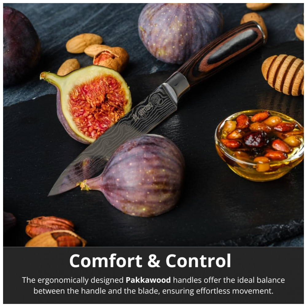 • Material do cabo: pakkawood ergonômico japonês (bolster inclinado)
