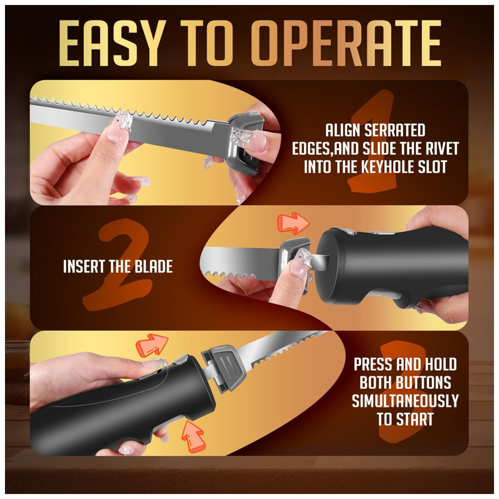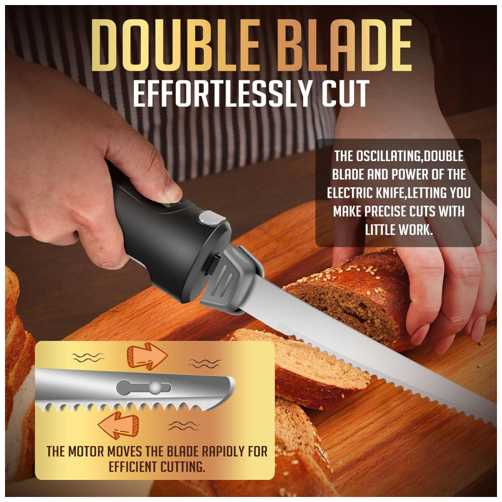 Conjunto de Facas Elétricas Recarregáveis Sem Fio com Estojo – Lâminas Serrilhadas Empunhadura Ergonômica Cortes Fáceis