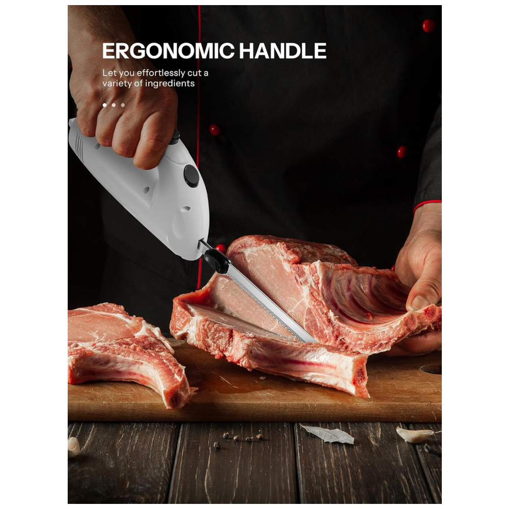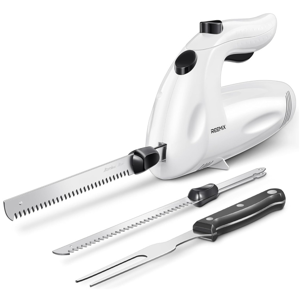 Conjunto de Facas Elétricas Reemix Potentes 150W com Garfo e 2 Lâminas – Ideal para Cortar Carnes Aves e Pães – Branco