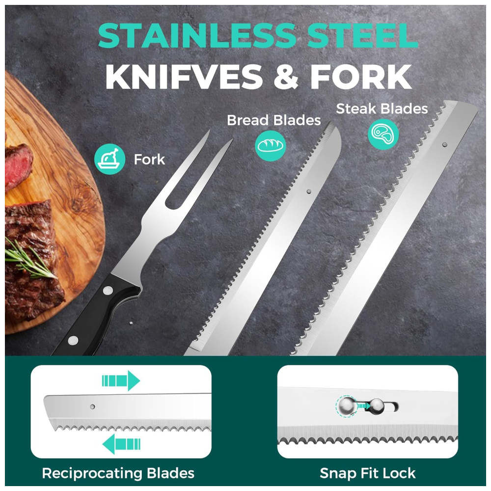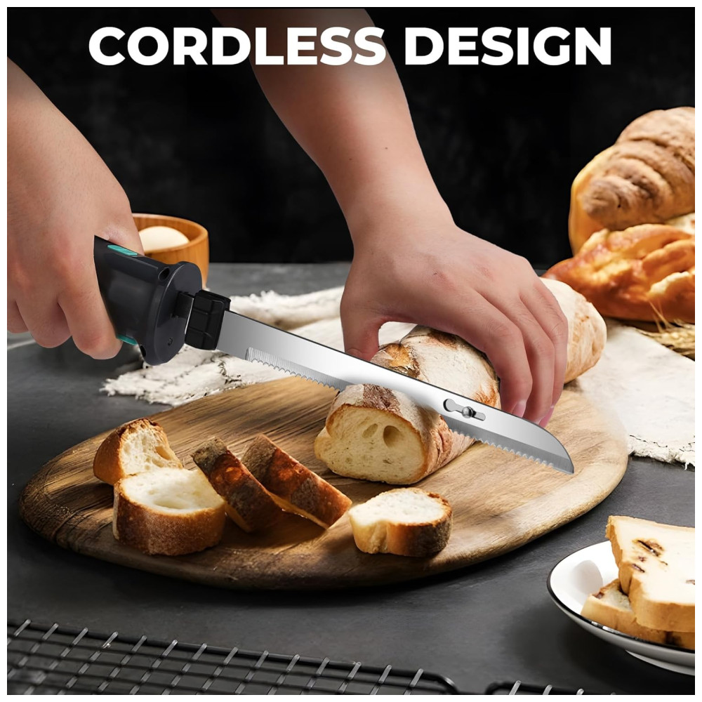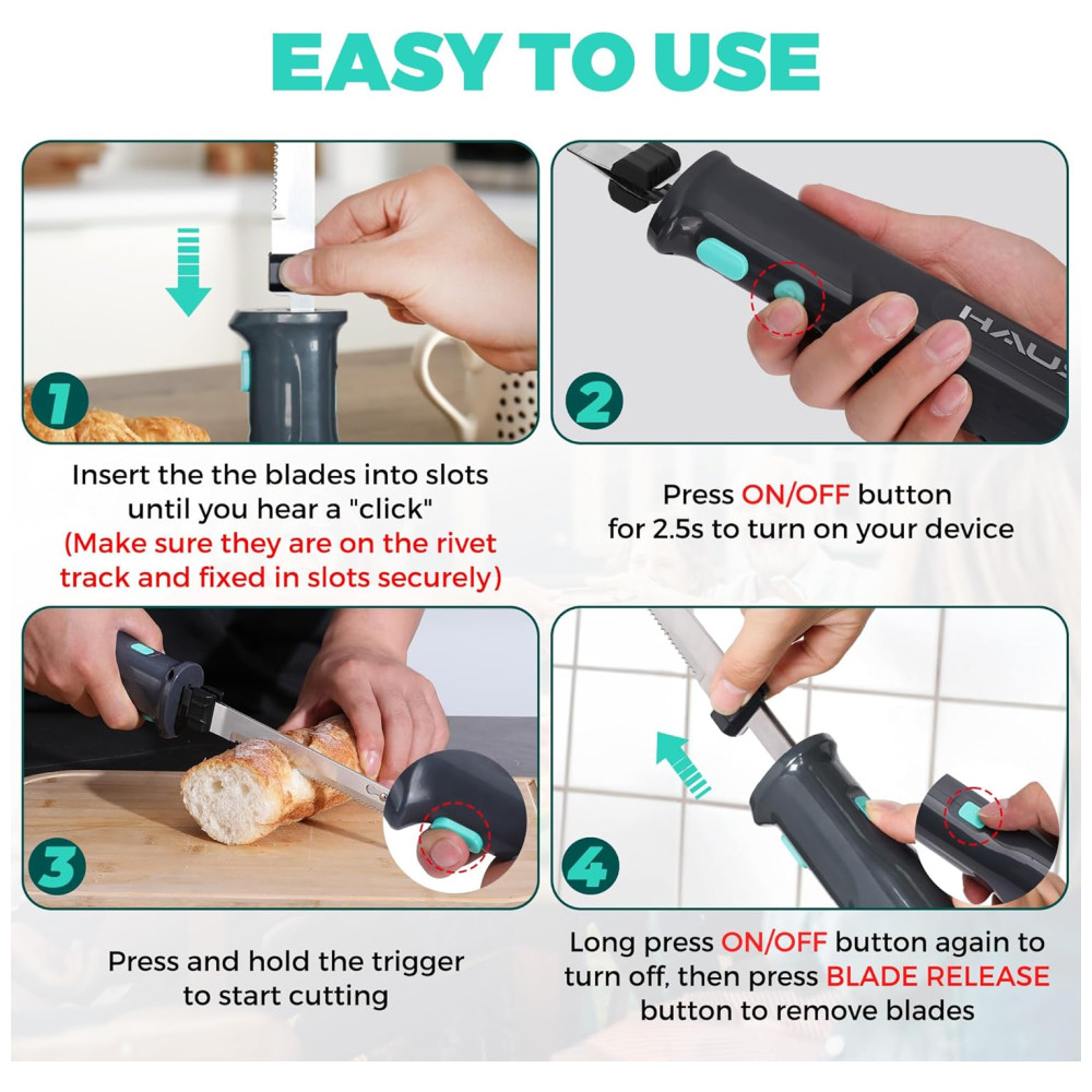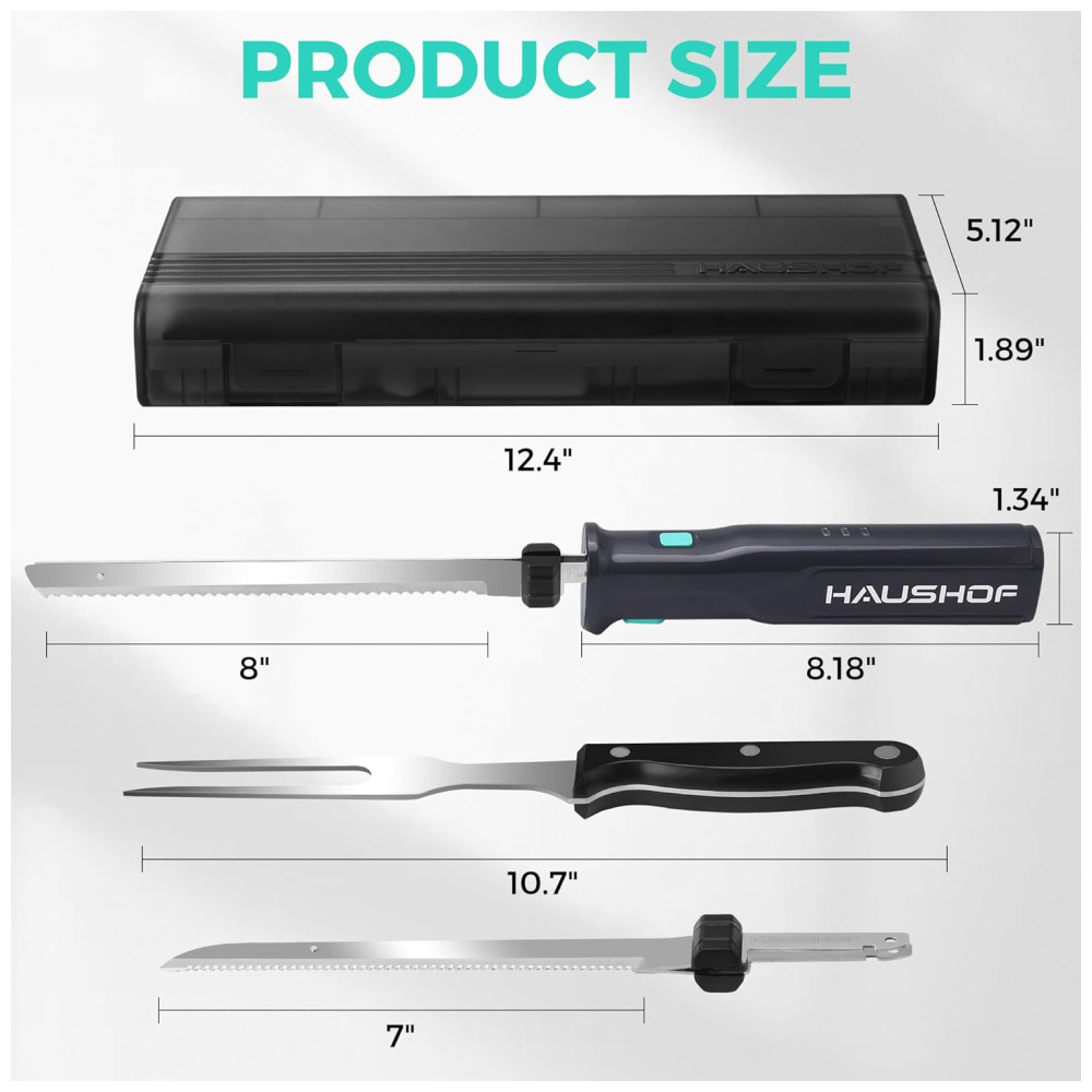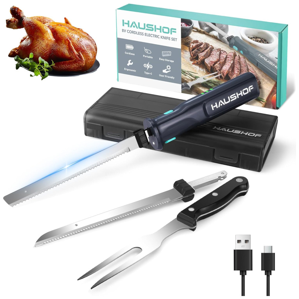 Conjunto de Facas Elétricas Sem Fio HAUSHOF 8V para Cortar Carnes Peixes e Pães Cortador de Carnes Recarregável com Lâminas de Aço