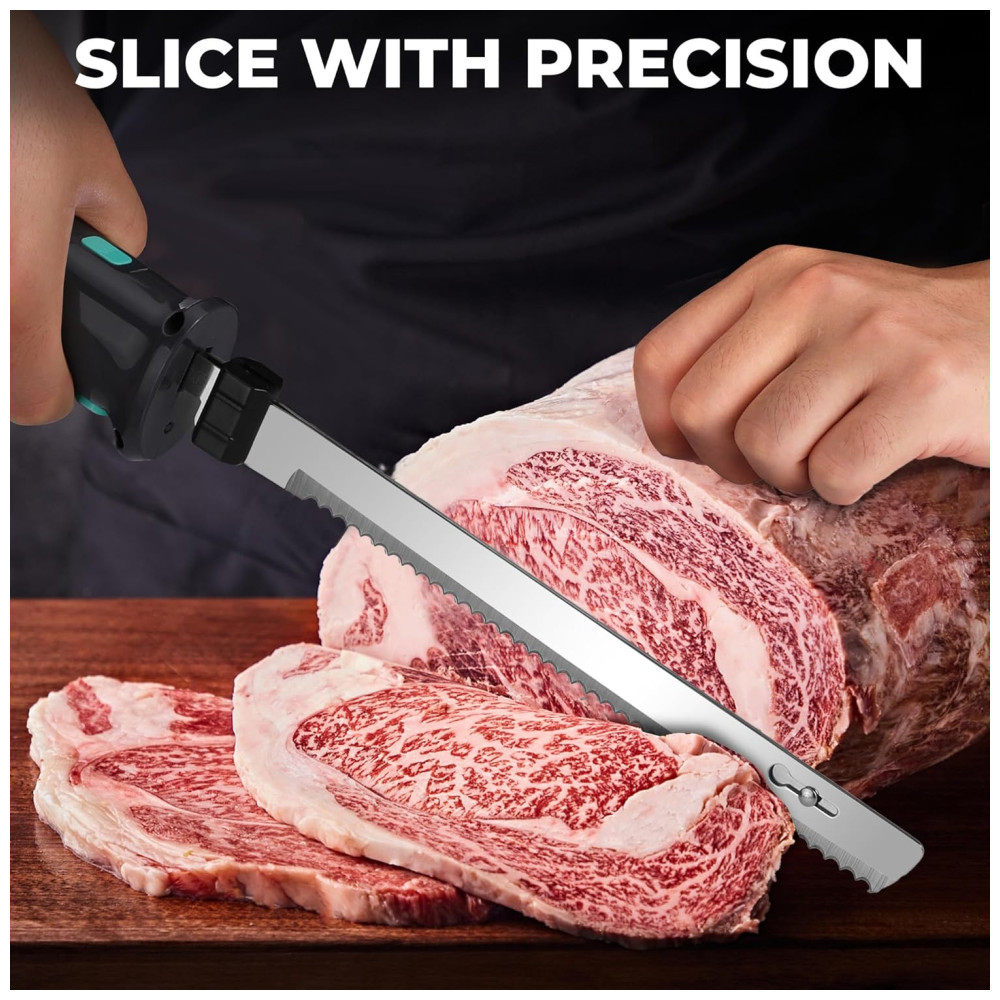 O Conjunto de Facas Elétricas da HAUSHOF é a solução perfeita para quem busca praticidade e precisão ao preparar diferentes tipos de alimentos. Com lâminas de aço inoxidável afiadas, esse conjunto inclui facas para carne, para pães, garfo de aço inoxidável, cabo elétrico sem fio, cabo de carregamento USBC e estojo de armazenamento. Ideal para cortar presuntos, peru, peixes, legumes, frutas e muito mais. O cabo elétrico recarregável permite operação flexível, sem restrições de fios. As lâminas possuem slots de segurança e trava para garantir estabilidade. Além disso, a faca para pães interrompe o funcionamento durante o carregamento. Com design prático, as lâminas e o garfo do cortador de carne elétrico são seguros para lava-louças, poupando tempo. O estojo protege os acessórios, mantendo-os organizados e fáceis de transportar.