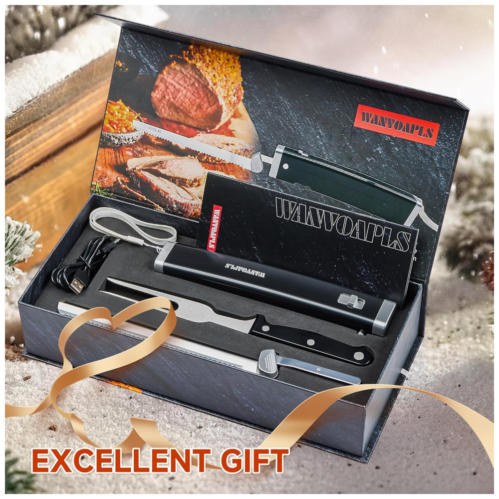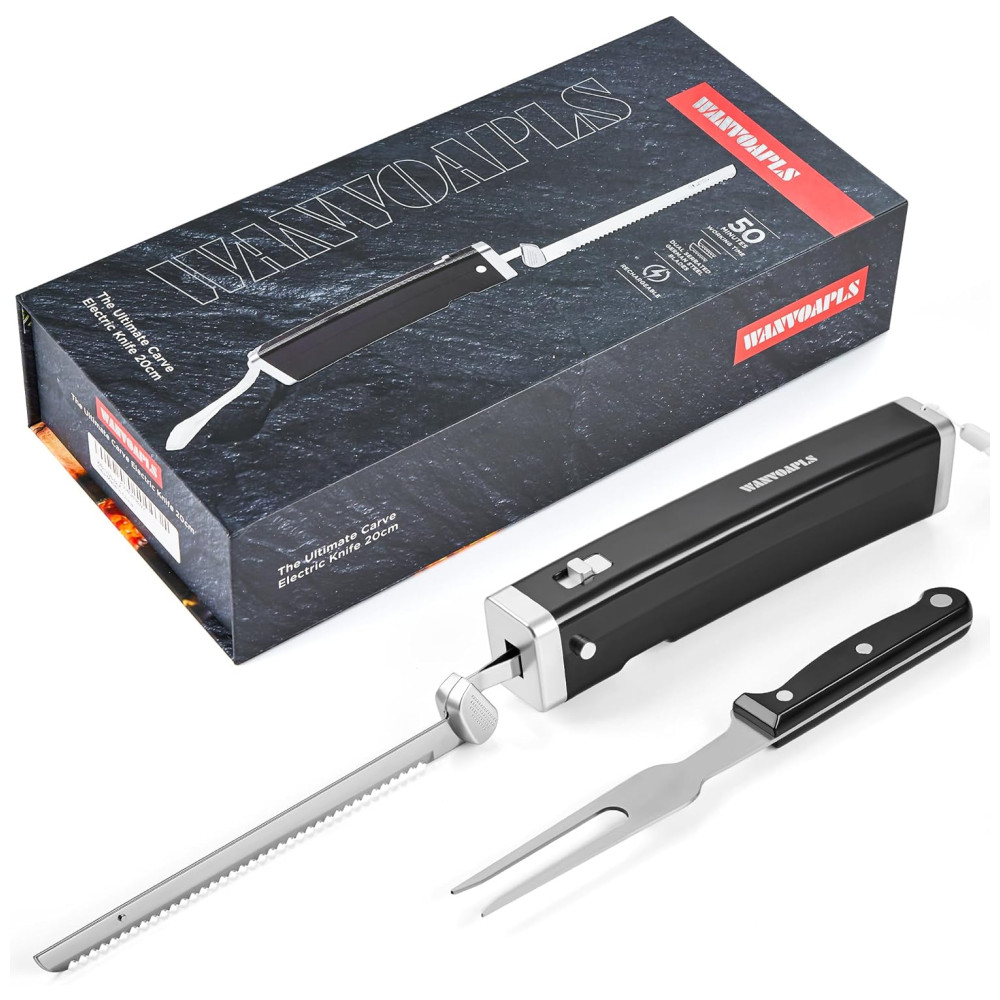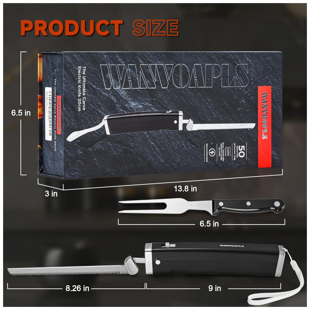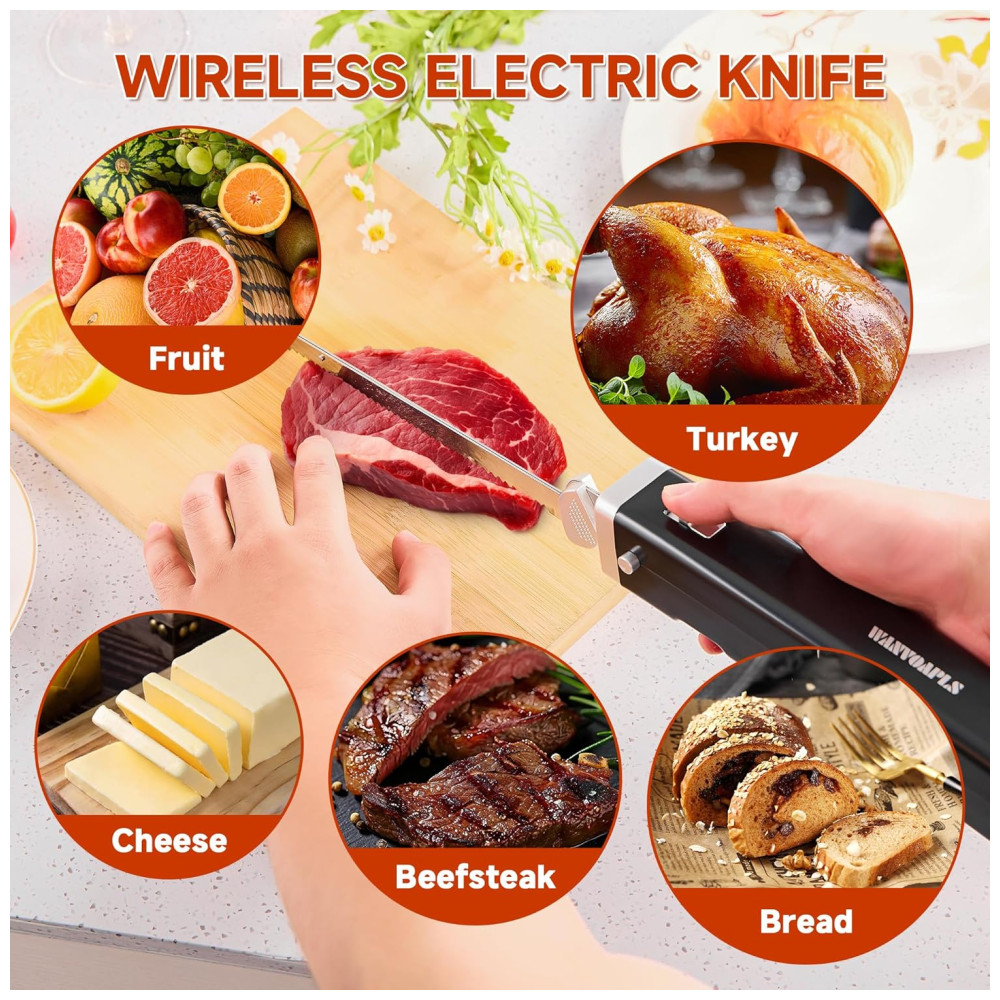 Conjunto de Facas Elétricas sem Fio Wanvoapls: Faca de Entalhe Recarregável com Trava de Segurança Cabo Ergonômico Preto com Facas e Garfos para Cortar
