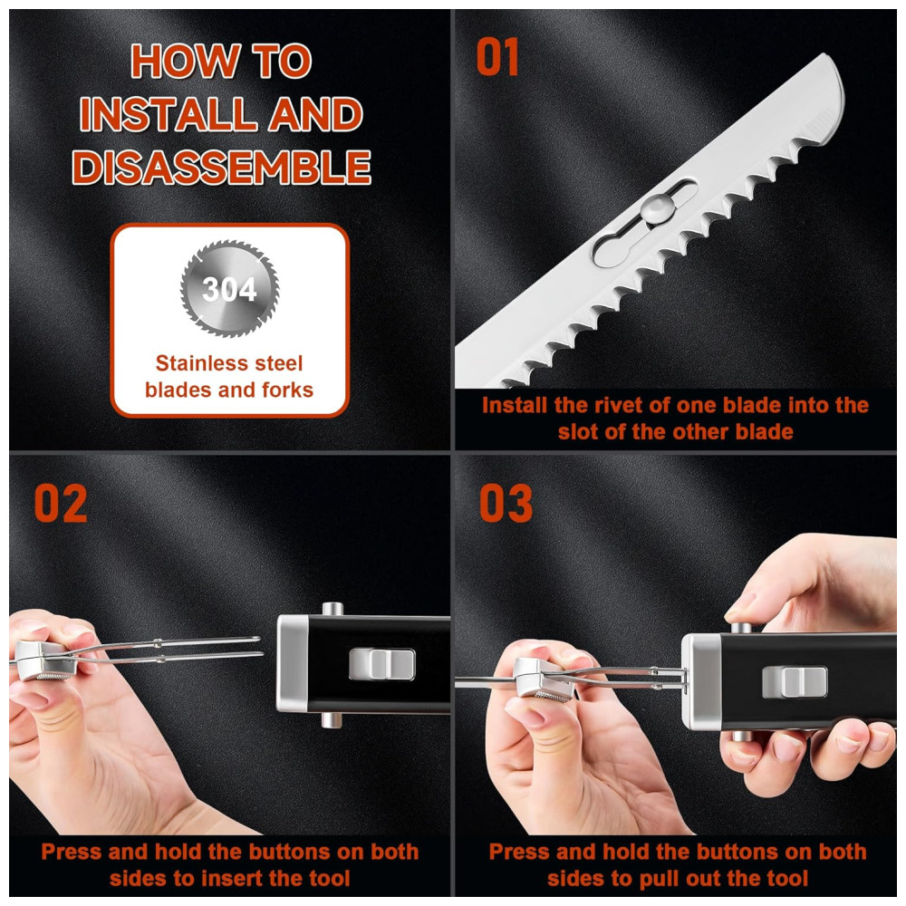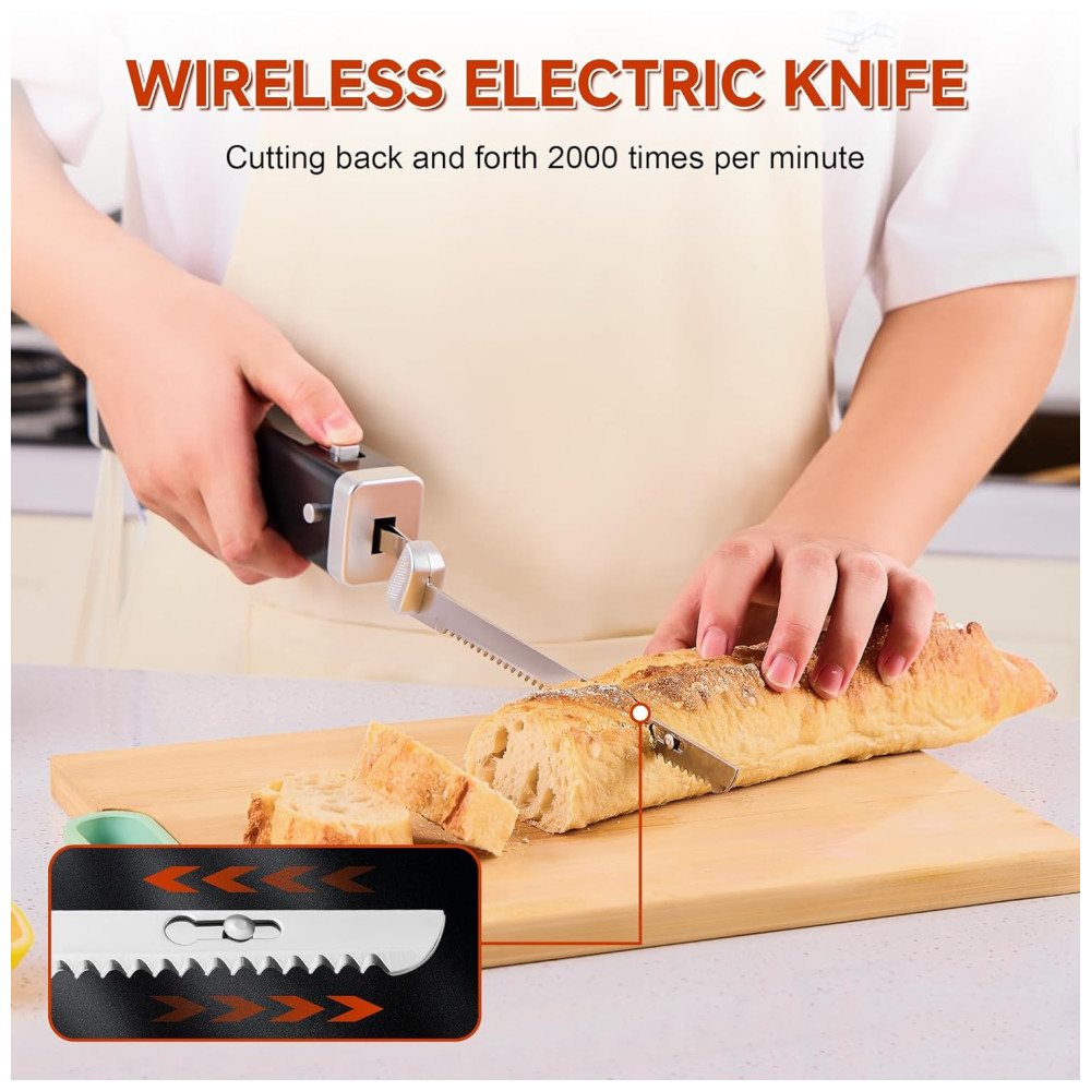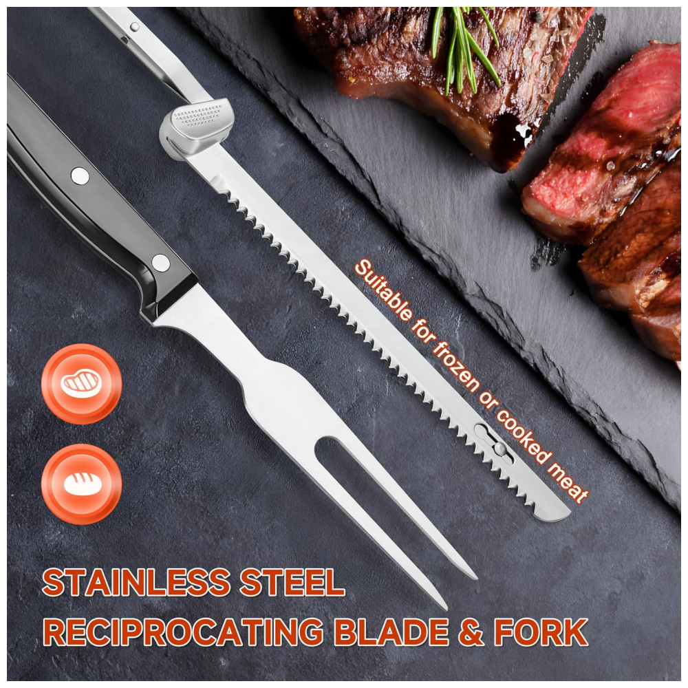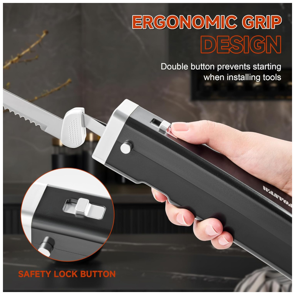 Conjunto de Facas Elétricas sem Fio Wanvoapls: Faca de Entalhe Recarregável com Trava de Segurança Cabo Ergonômico Preto com Facas e Garfos para Cortar