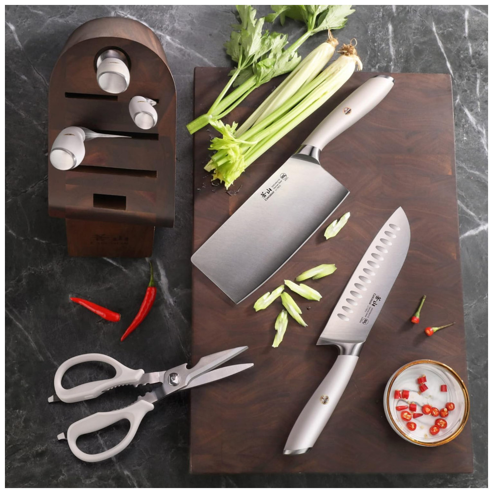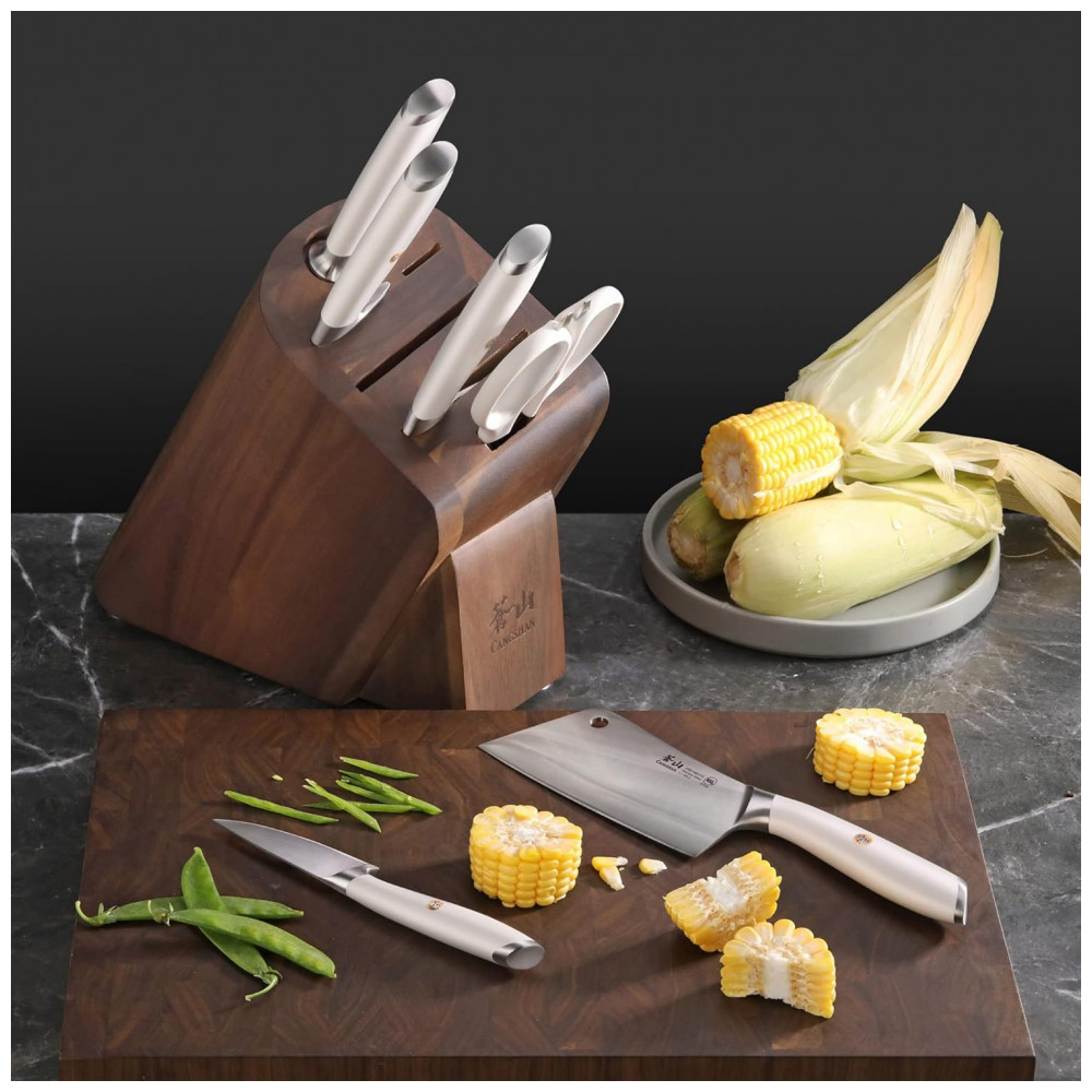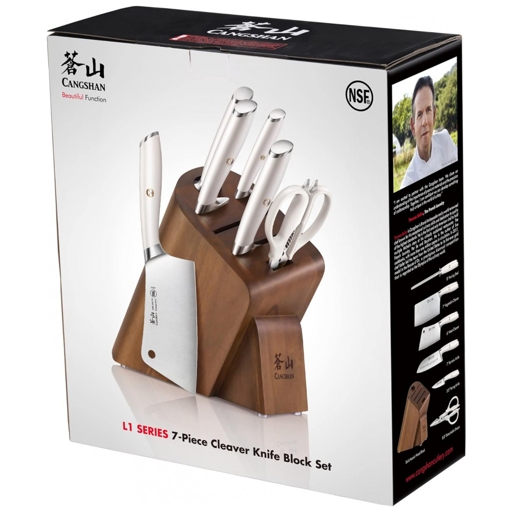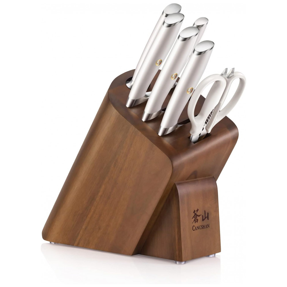 Conjunto de Facas em Aço Alemão com Bloco de Bancada 7 Peças Cangshan L1 Série 1027129 Branco