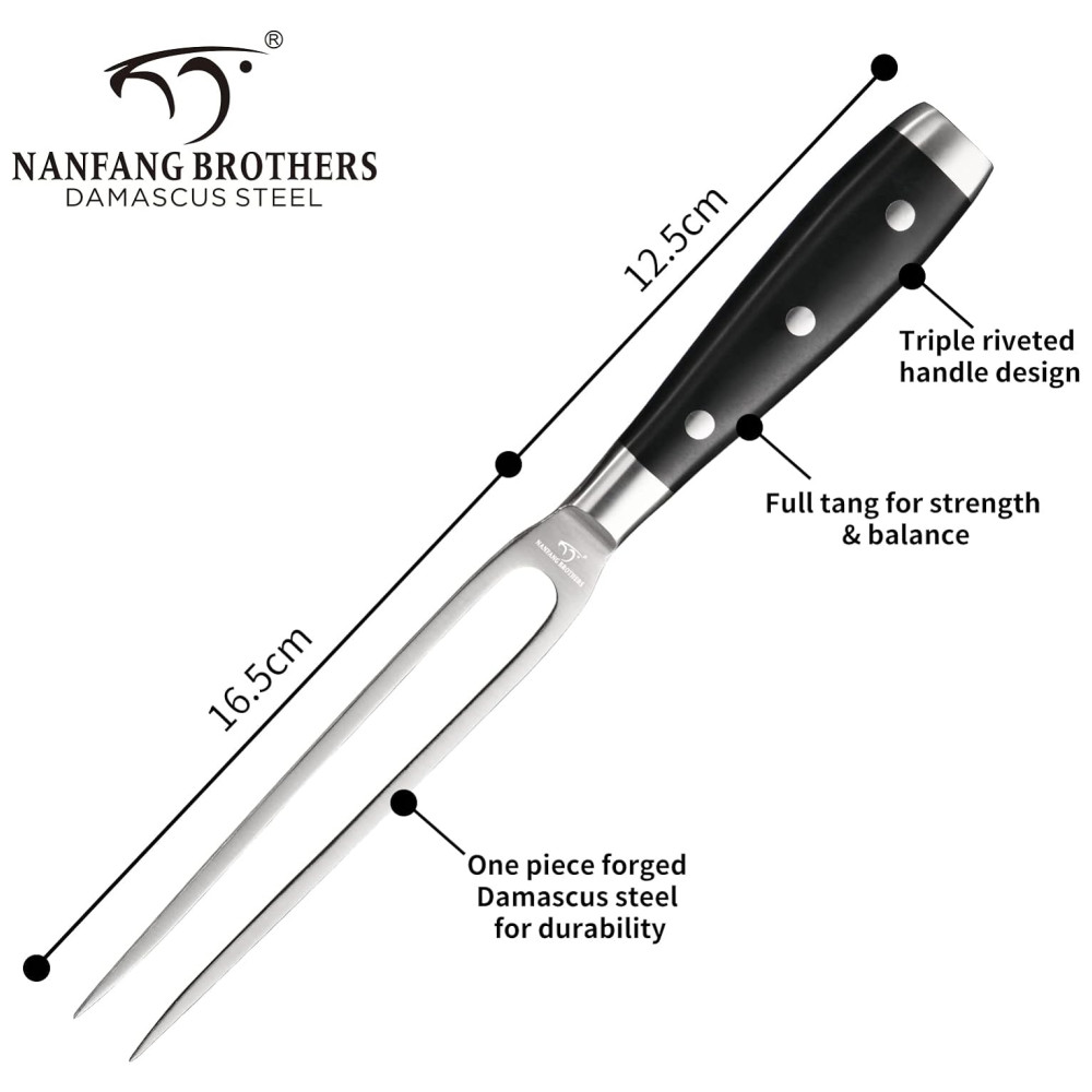 UMA BOA ATUALIZAÇÃO Este conjunto de facas Damasco contém 6 facas projetadas para cortar facilmente seus bifes gourmet favoritos sem perturbar o sabor ou a textura. Além disso, o ajudante perfeito para trinchar e servir: o garfo reto para carne segura os assados com firmeza durante o corte e auxilia na hora de porcionar e servir a carne.