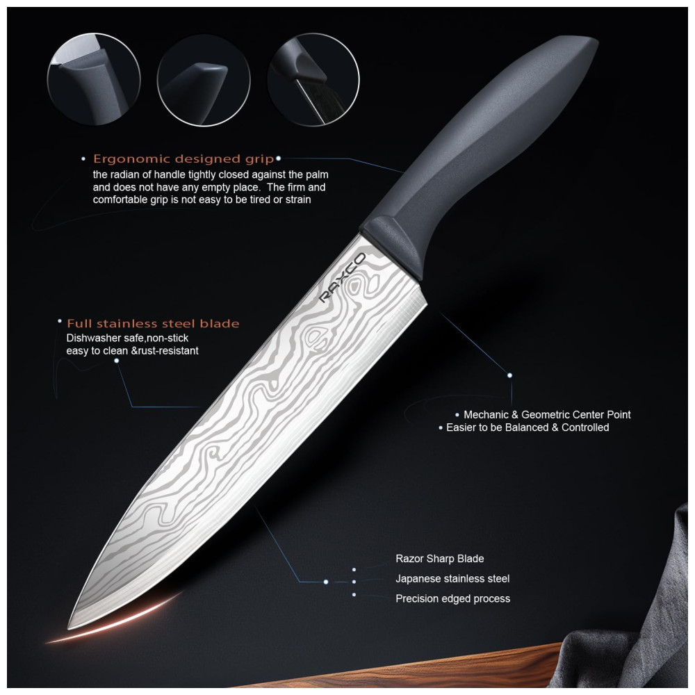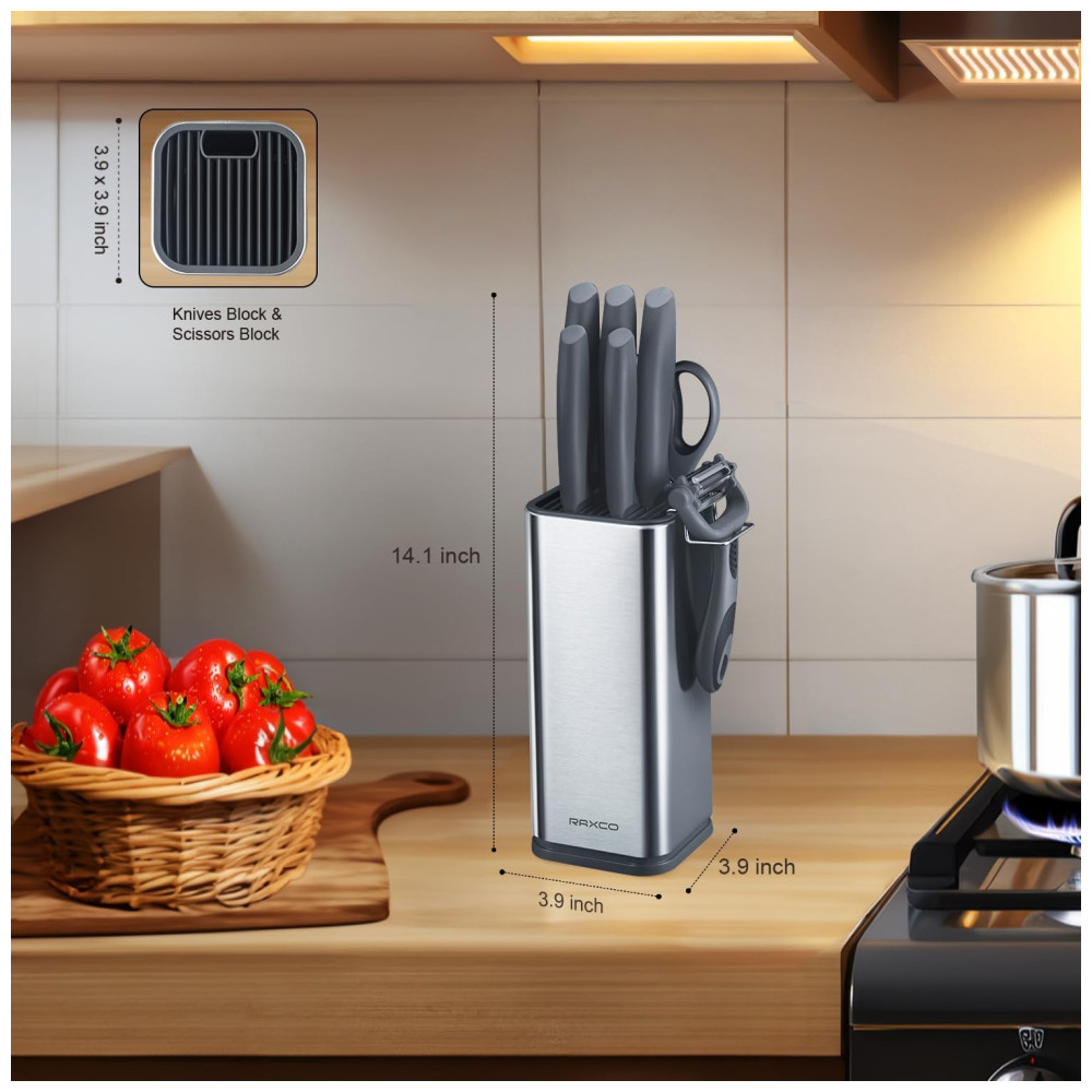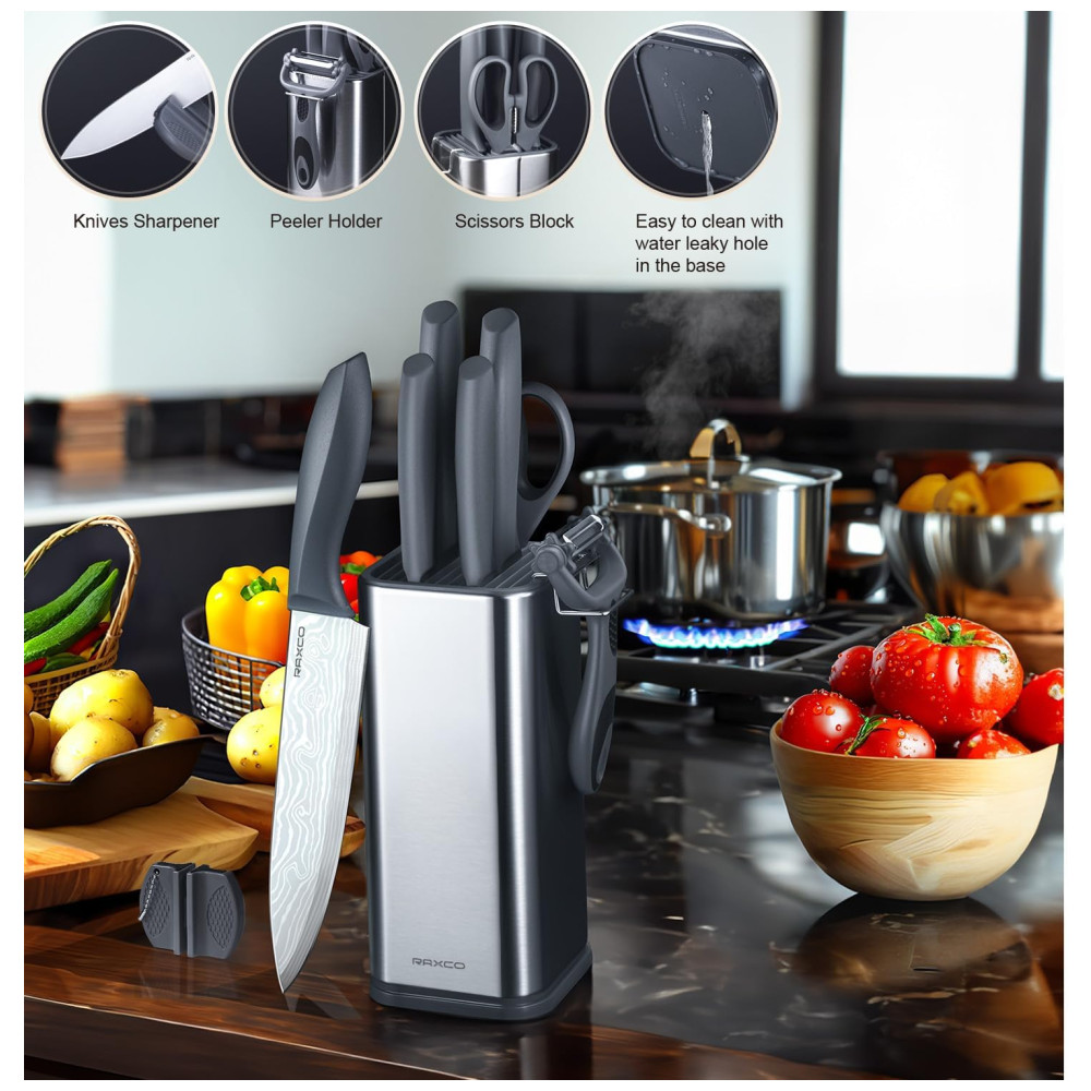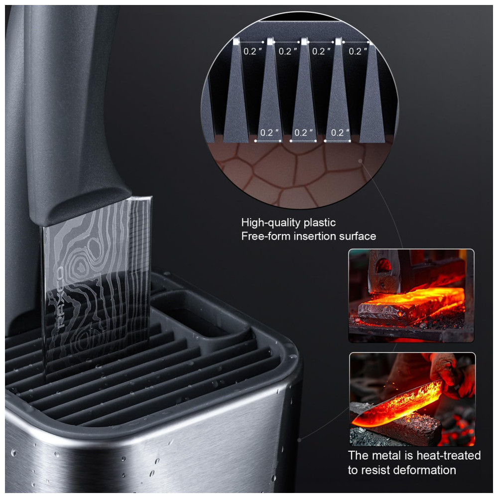 Conjunto de blocos de facas de aço inoxidável Lâminas de aço inoxidável de alto carbono para precisão que garantem que as lâminas mantenham sua borda ultra afiada e precisão precisa para cortar alimentos.