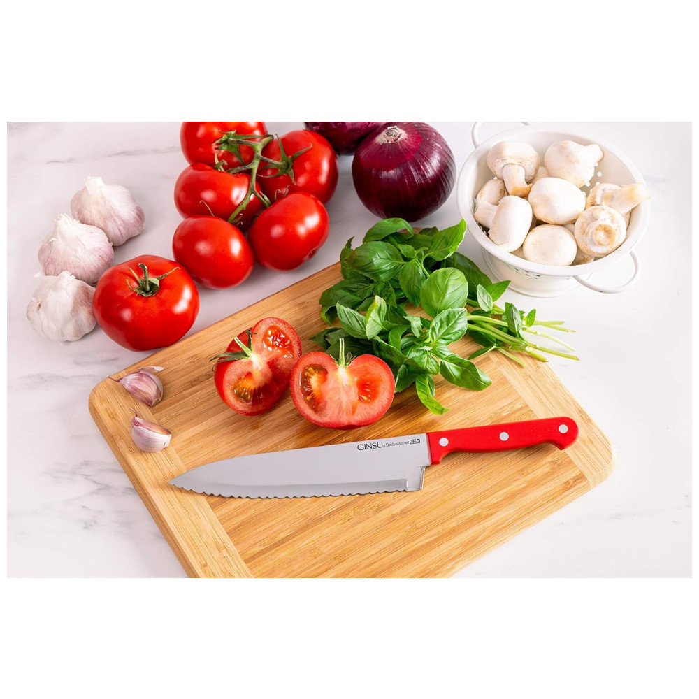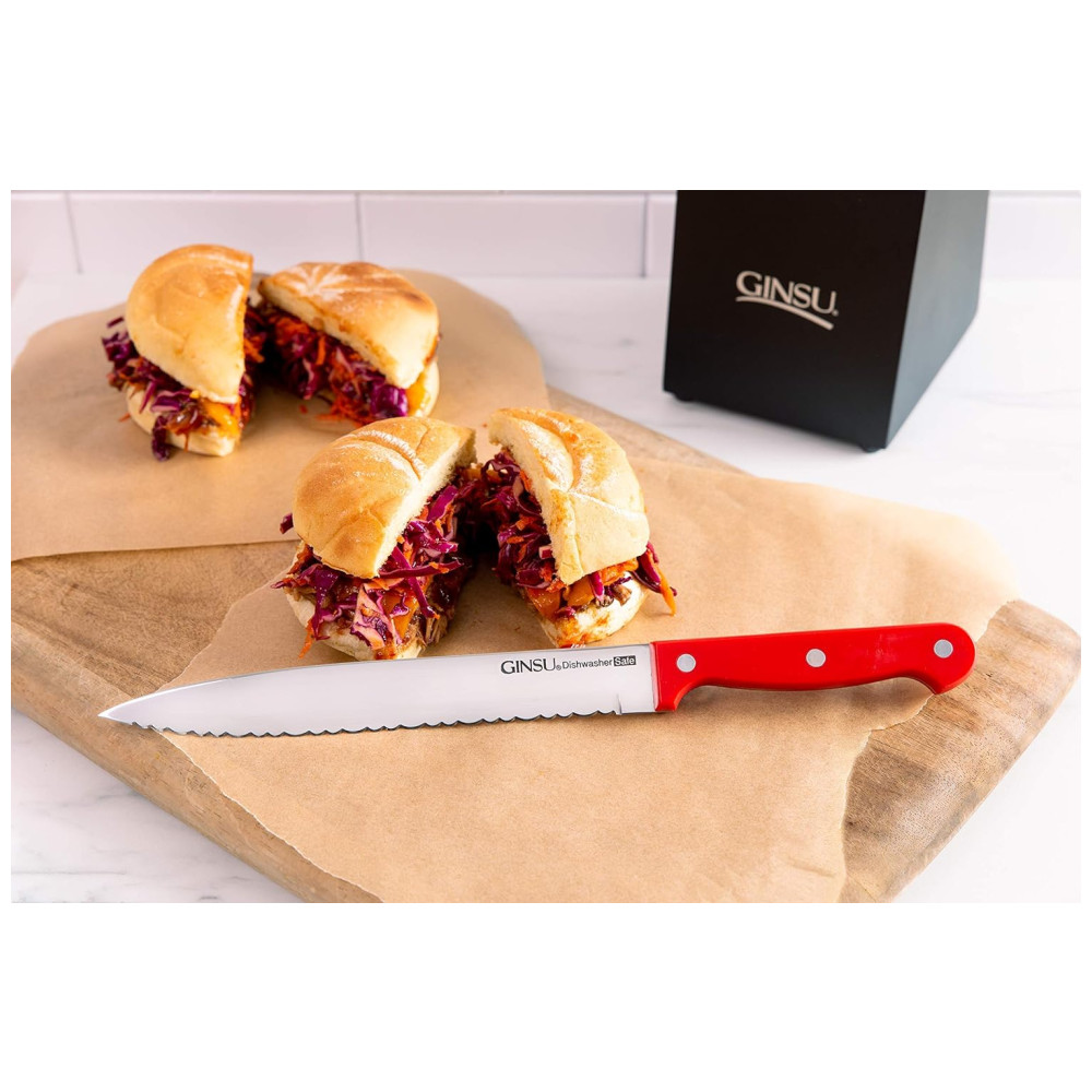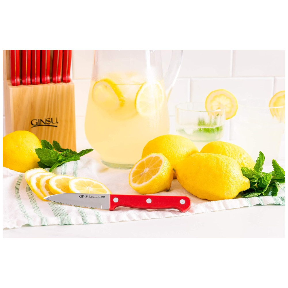 Conjunto de Facas em Aço Inoxidável com Bloco de Bancada 14 Peças Ginsu Kiso Vermelho