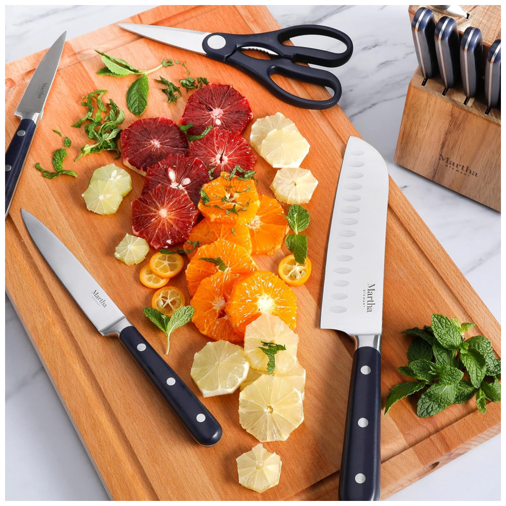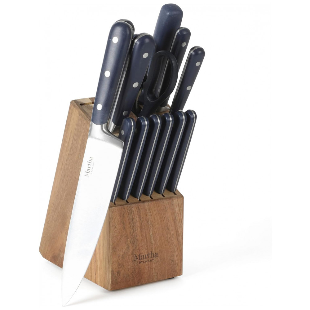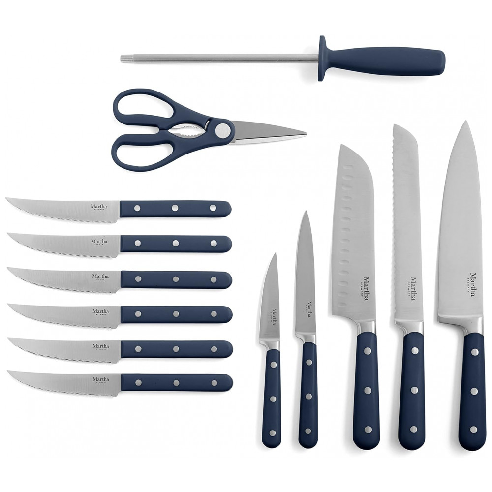 Conjunto de Facas em Aço Inoxidável com Bloco de Bancada 14 Peças MARTHA STEWART Azul