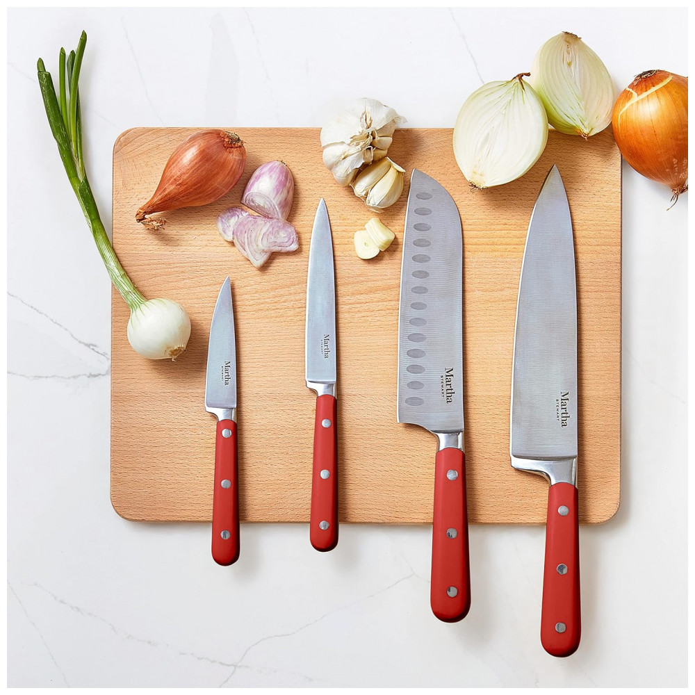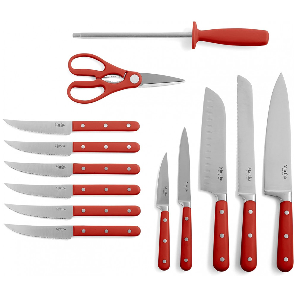 Conjunto de Facas em Aço Inoxidável com Bloco de Bancada 14 Peças Martha Stewart Vermelho