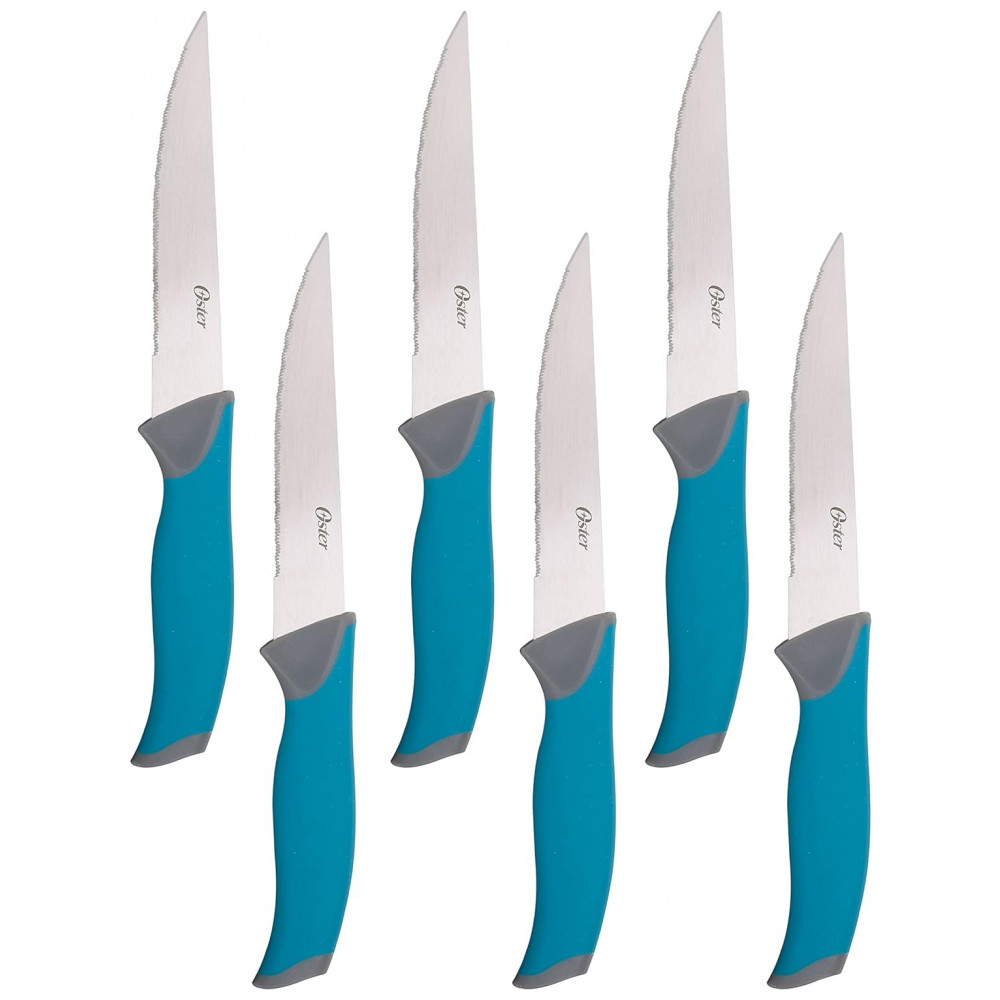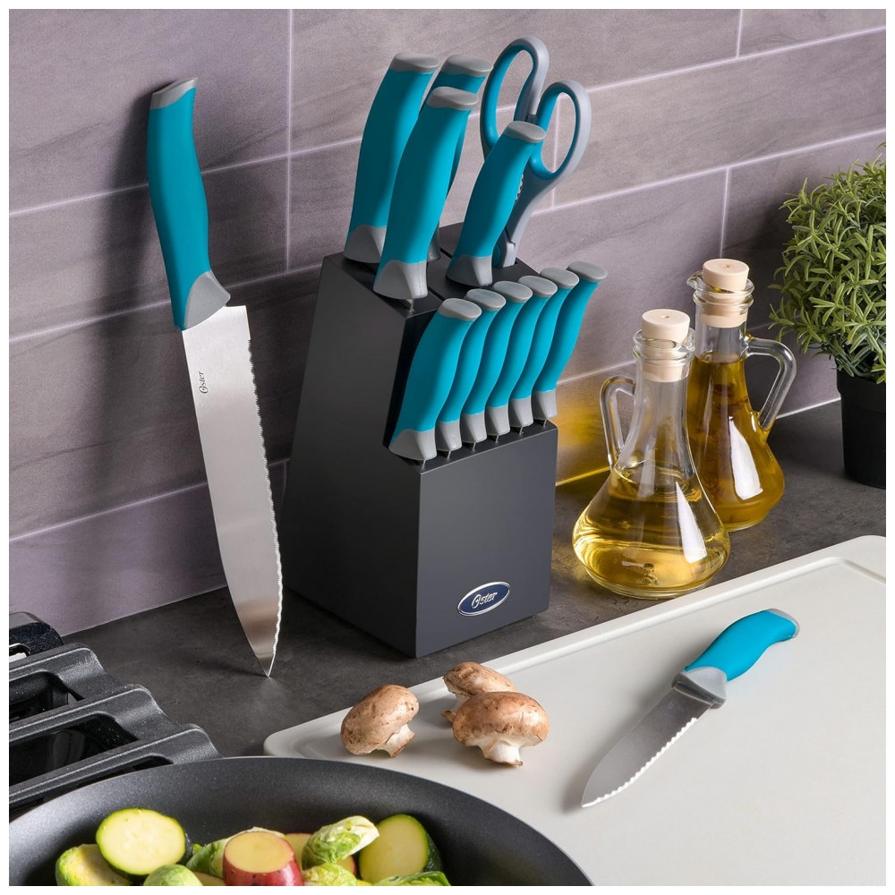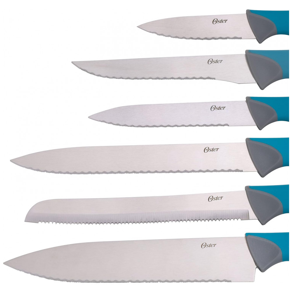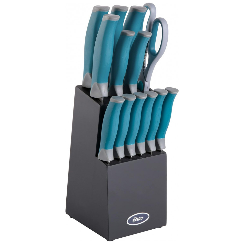 Conjunto de Facas em Aço Inoxidável com Bloco de Bancada 14 Peças Oster Azul e Cinza