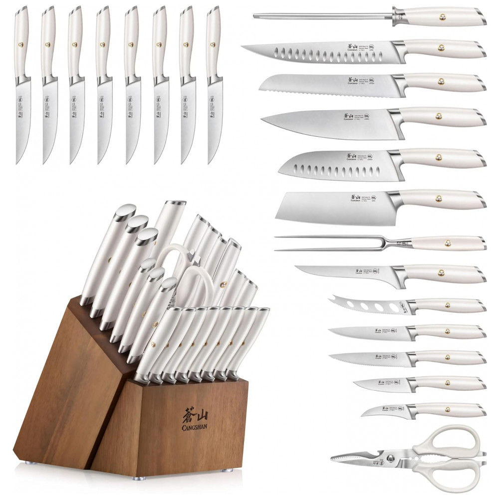 Conjunto de Facas em Aço Inoxidável com Bloco de Bancada 23 Peças Cangshan 1027549 Branco
