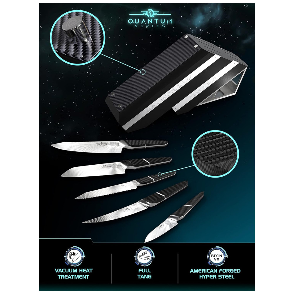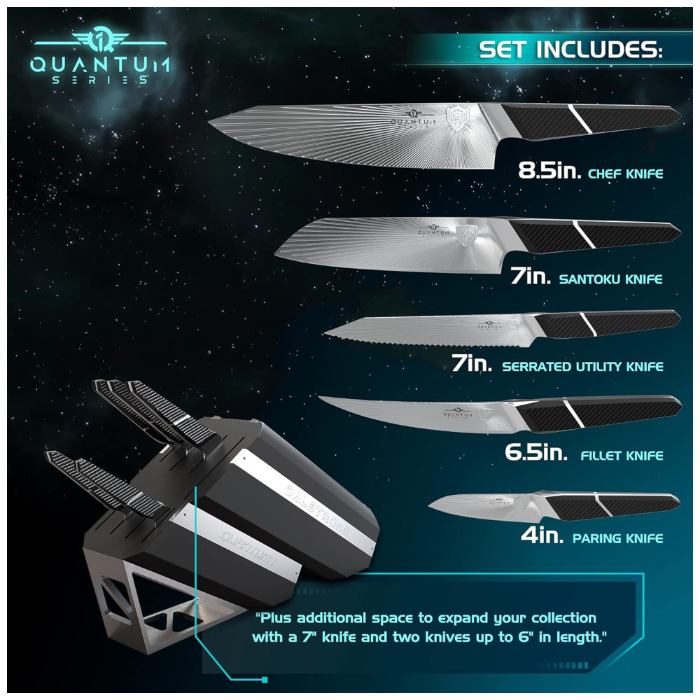 As facas Dalstrong Quantum 1 Series são predadoras de ponta no mundo culinário e apresentam tecnologia de ponta. Impressionantemente afiada e meticulosamente afiada por artesãos especializados a 8 12 , esta série única foi cuidadosamente projetada para excepcional retenção de bordas, hiperprecisão e para fornecer os cortes mais limpos e sem esforço.