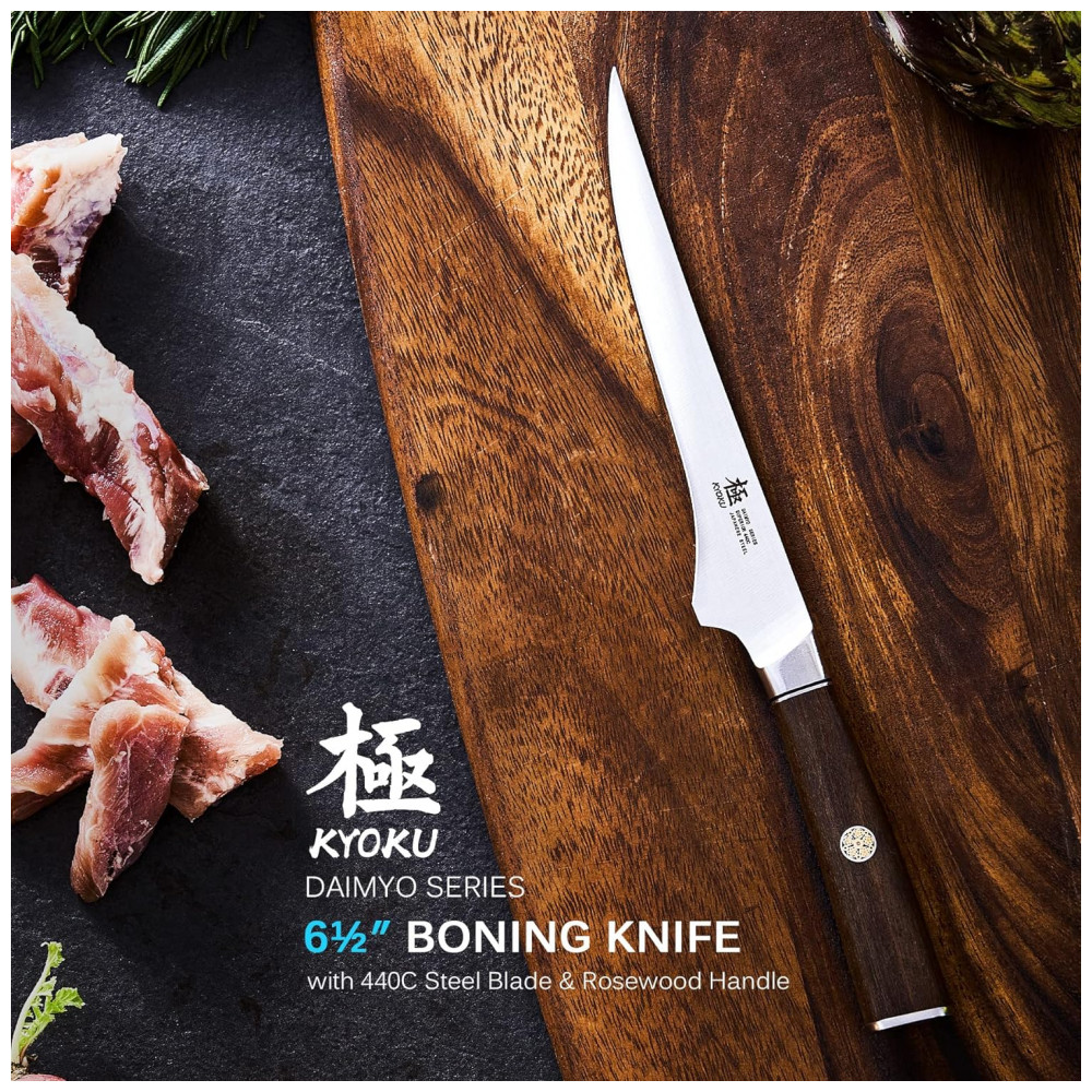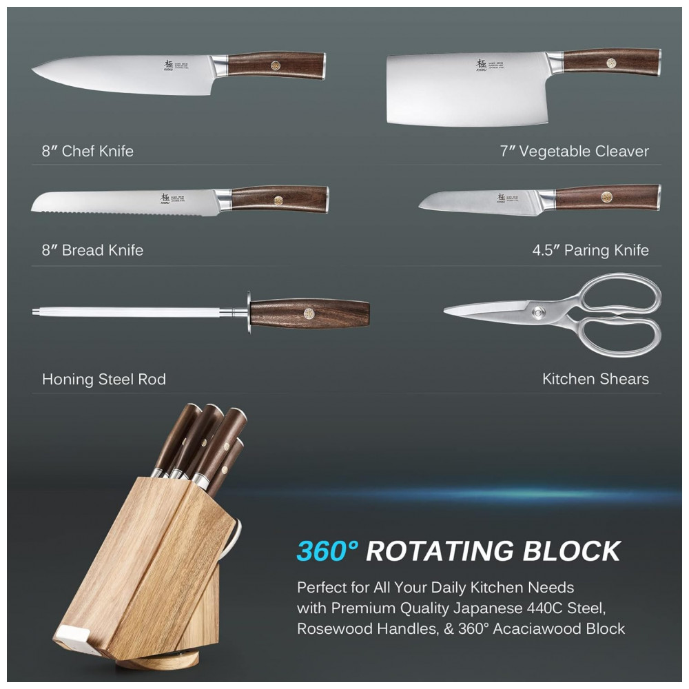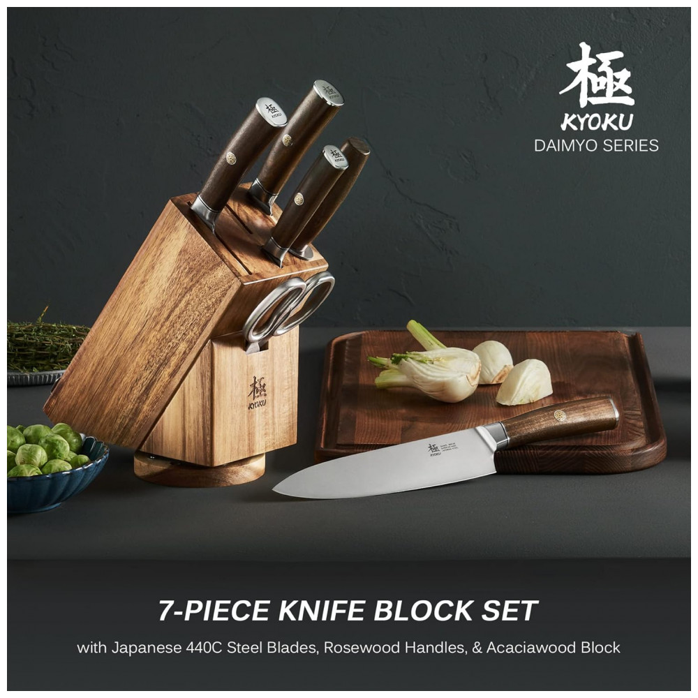 CONJUNTO DE FACAS DE BLOCO DE 7 PEÇAS Este conjunto de facas da Kyoku possui uma coleção abrangente de facas de nível profissional.