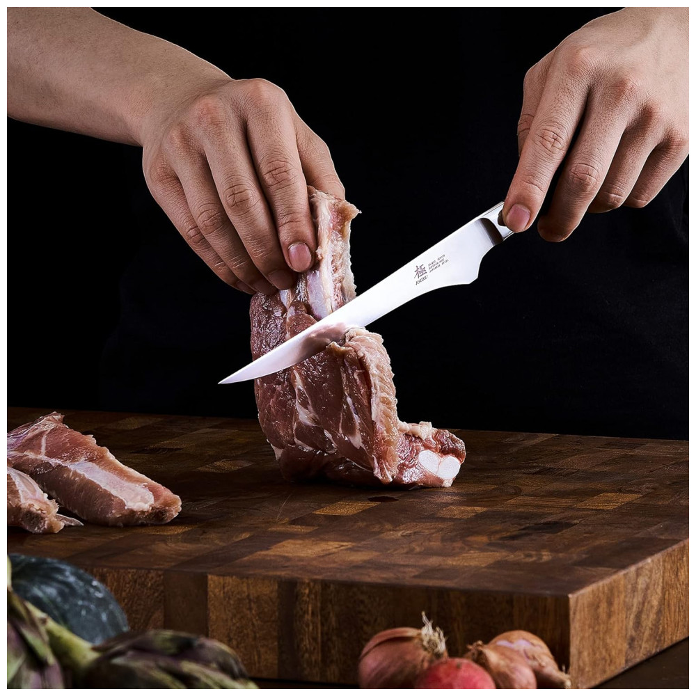 PROJETO ERGONÔMICO O artesanato meticuloso desta faca de fornece a forma perfeita e a distribuição de peso da lâmina ao cabo necessária para uma operação bem equilibrada, evitando fadiga e cãibras mesmo em ambientes profissionais que exigem sessões prolongadas de uso
