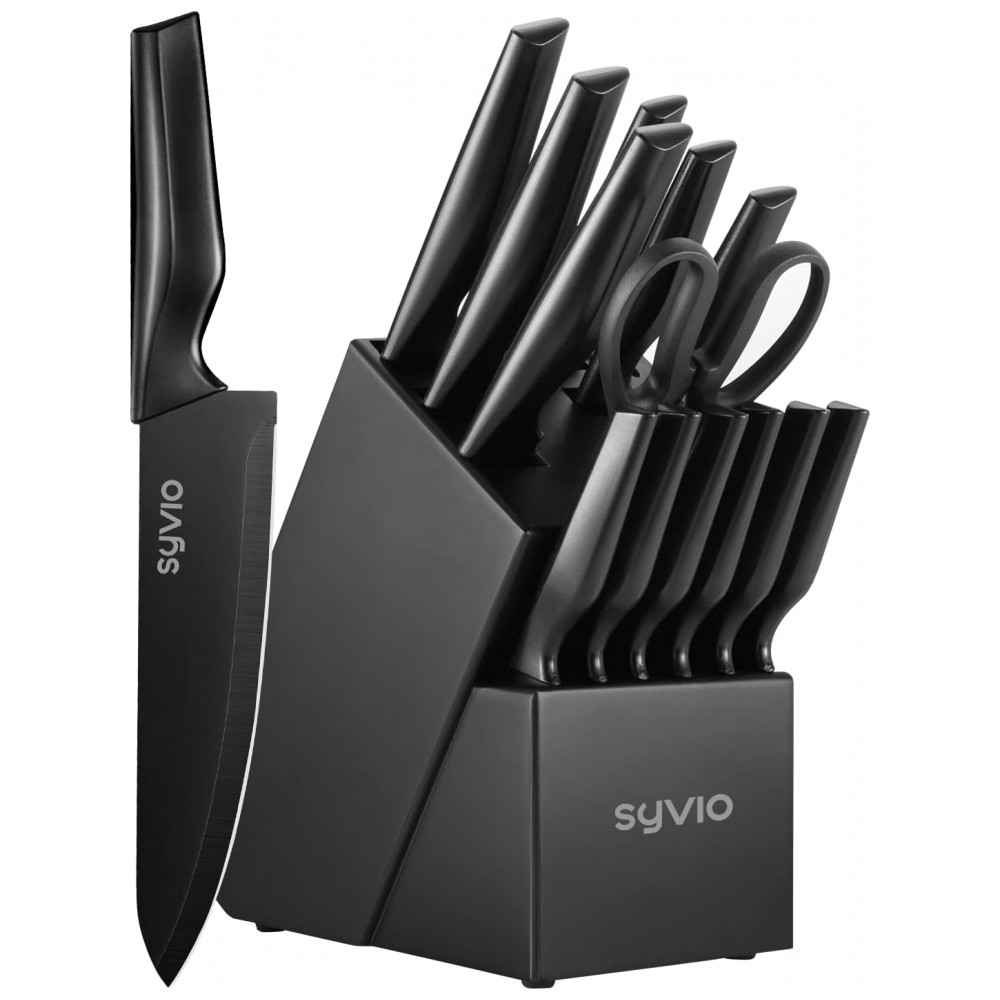 Conjunto de Facas em Aço Inoxidável com Bloco de Bancada e Afiador Embutido 14 Peças Syvio Preto