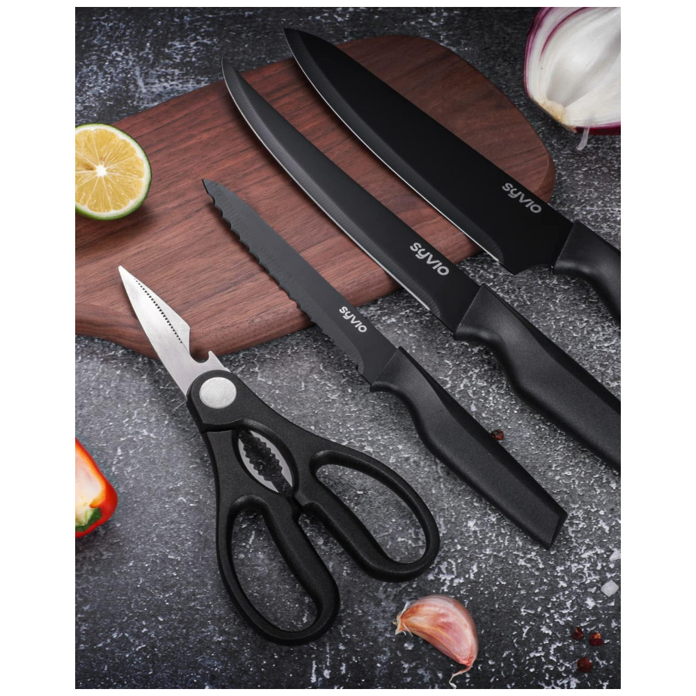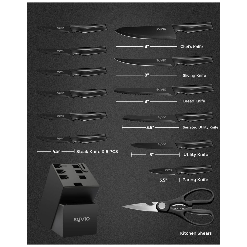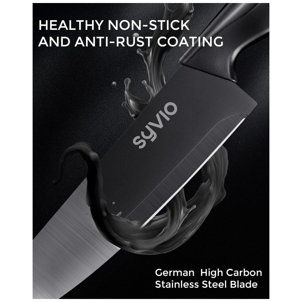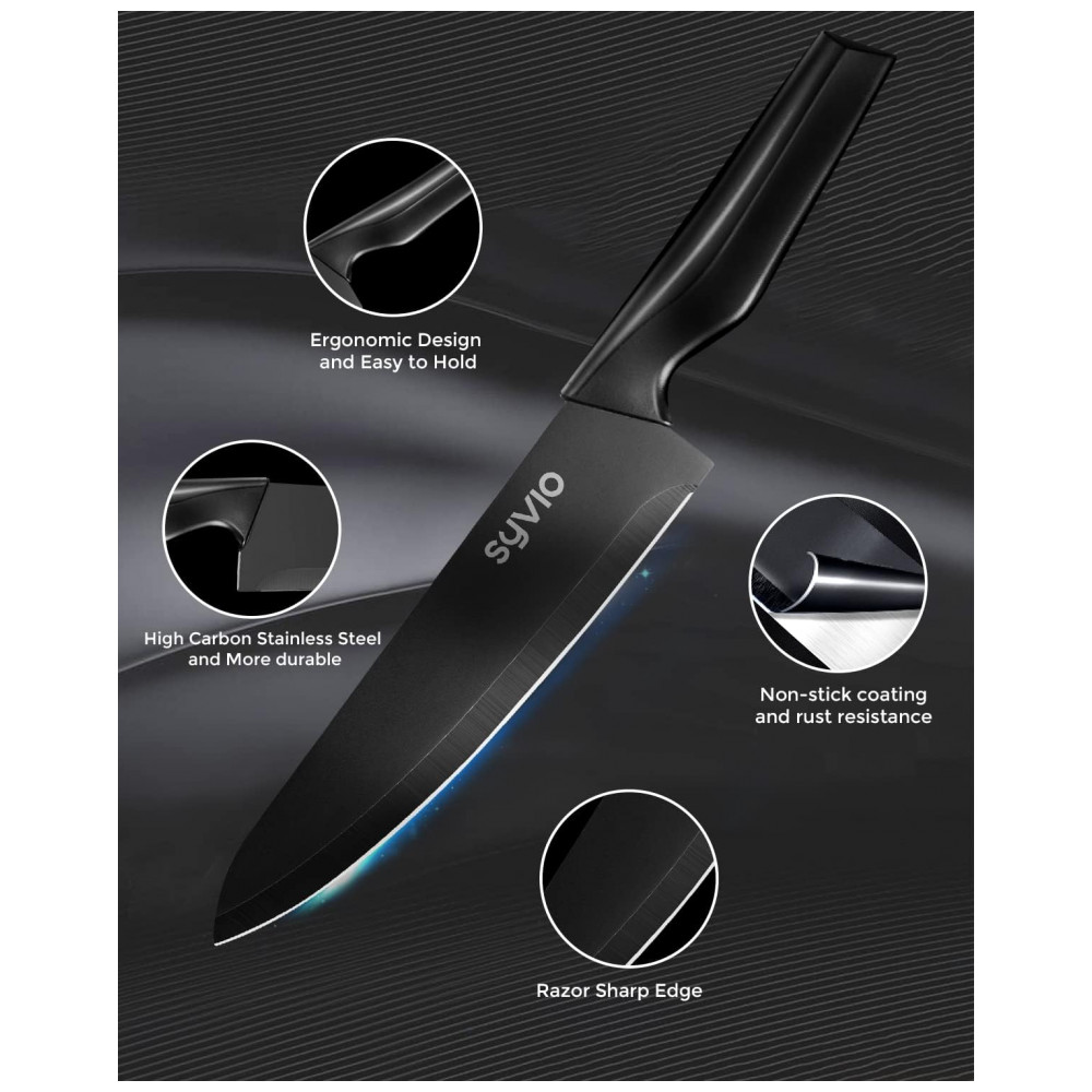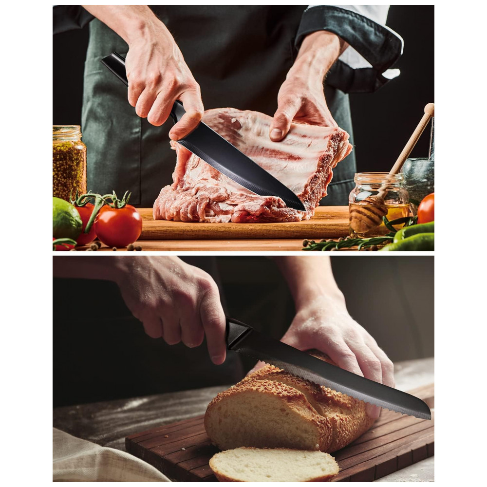 Antiaderente e resistente à ferrugem: o revestimento preto do aço evita a oxidação, de modo que o conjunto de facas de cozinha permanecerá antiaderente e resistente à ferrugem por muitos anos