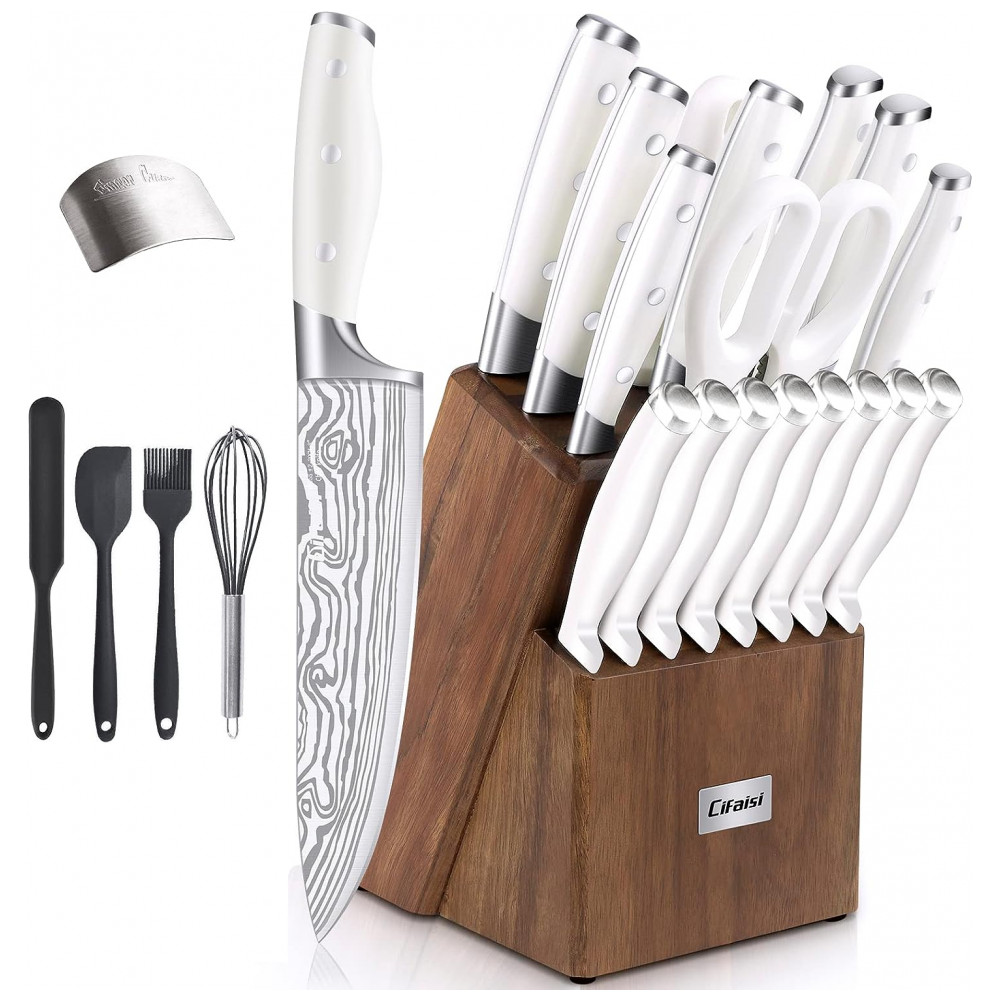 Conjunto de Facas em Aço Inoxidável com Bloco de Bancada e Afiador Embutido 23 Peças Cifaisi Branco