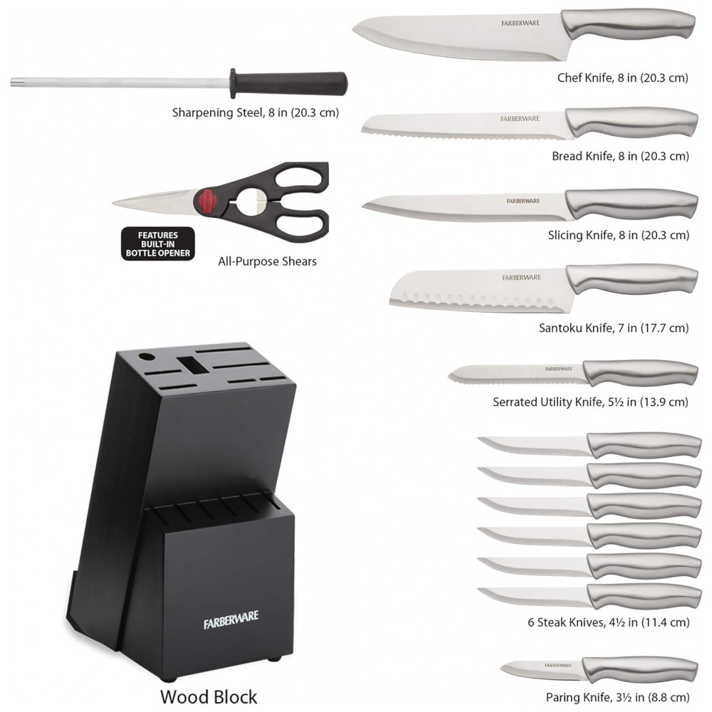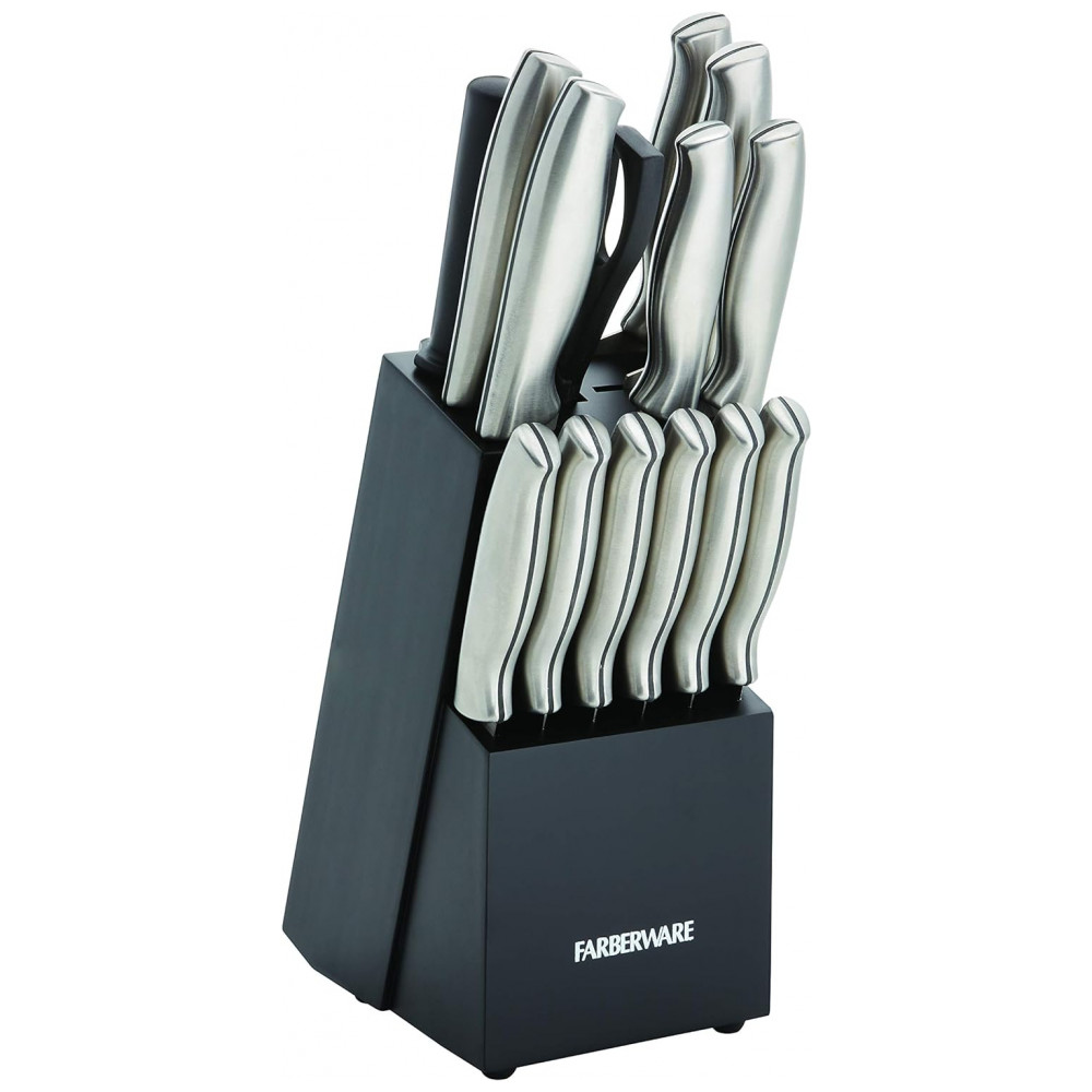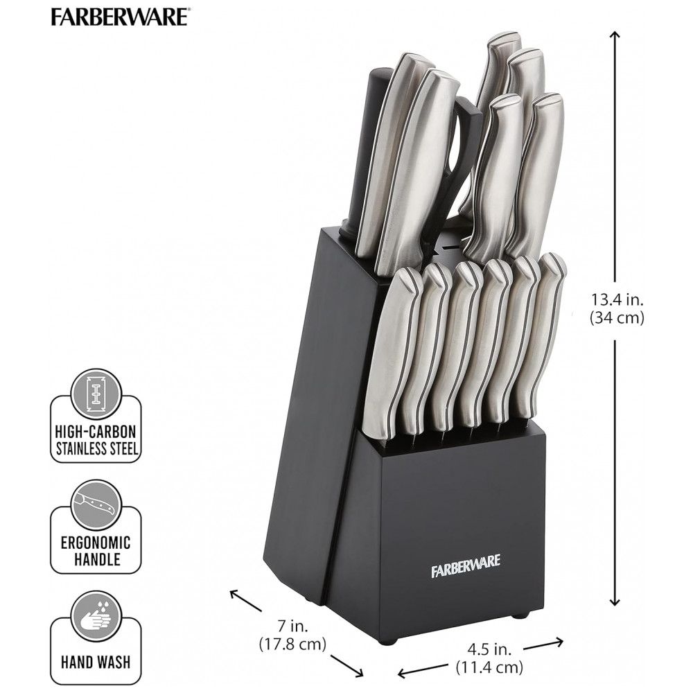 Conjunto de Facas em Aço Inoxidável com Bloco de Bancada e Cabo Ergonômico 15 Peças Farberware Prata