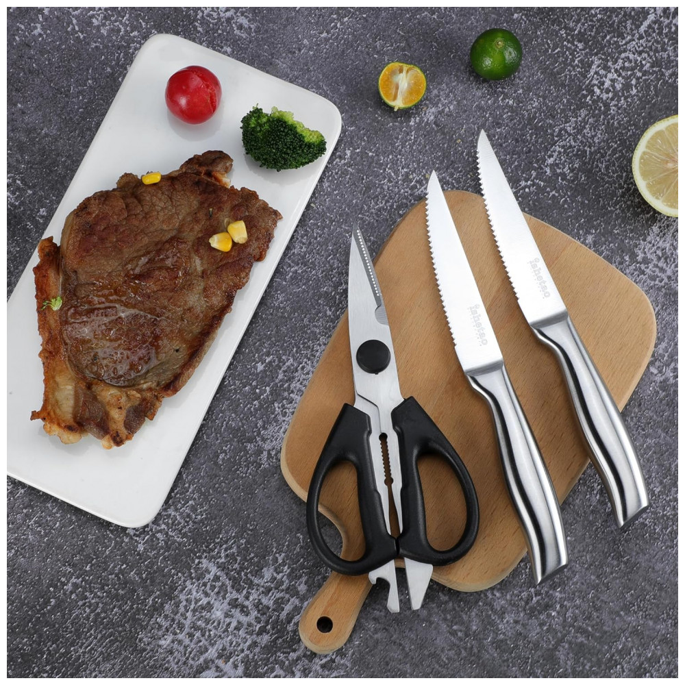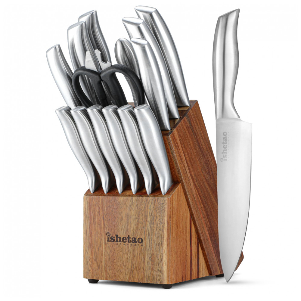 Conjunto de Facas em Aço Inoxidável com Bloco de Bancada e Cabo Ergonômico 15 Peças IsheTao Prata