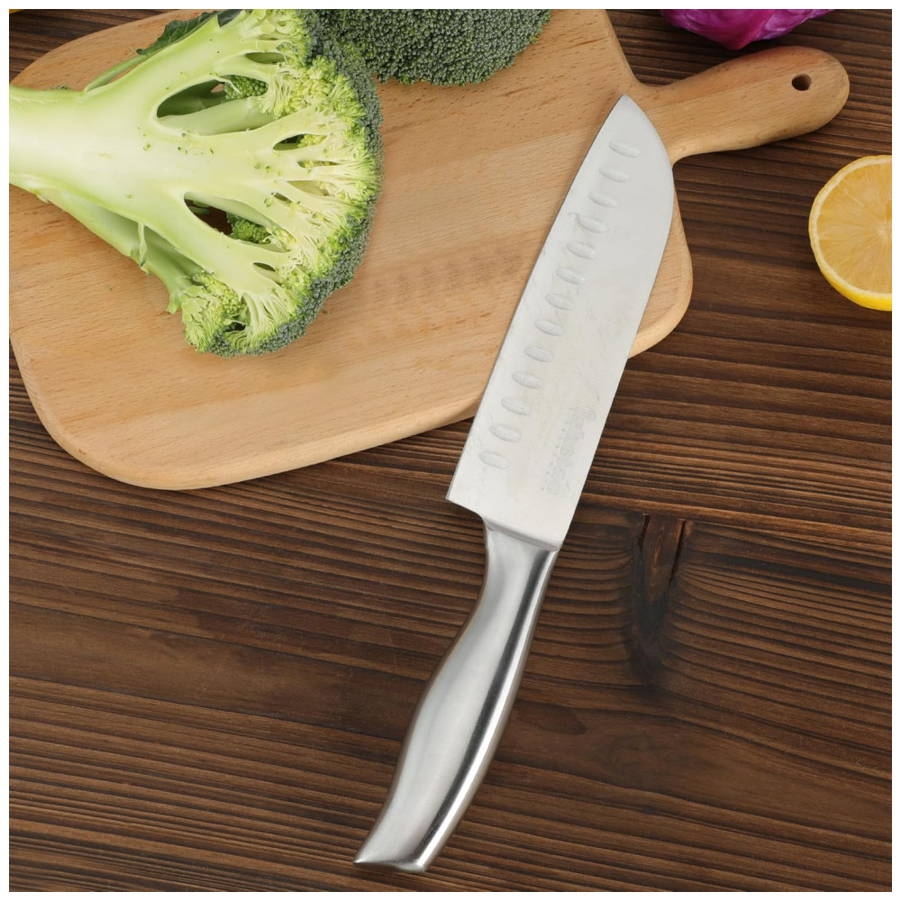 DESIGN ERGONÔMICO EXCLUSIVO Cabo de aço inoxidável de peça única para ótimo equilíbrio, aderência e durabilidade, a faca de cozinha full tang é tão confortável de segurar que você pode cortar com mais facilidade, segurança e rapidez