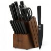 CONJUNTO DE FACAS DE EXCELENTE QUALIDADE COM BLOCO O conjunto de facas de cozinha é feito de aço inoxidável de alto carbono com excelente resistência à ferrugem e corrosão. O bloco de facas adota madeira maciça premium com revestimento fino para maior confiabilidade.