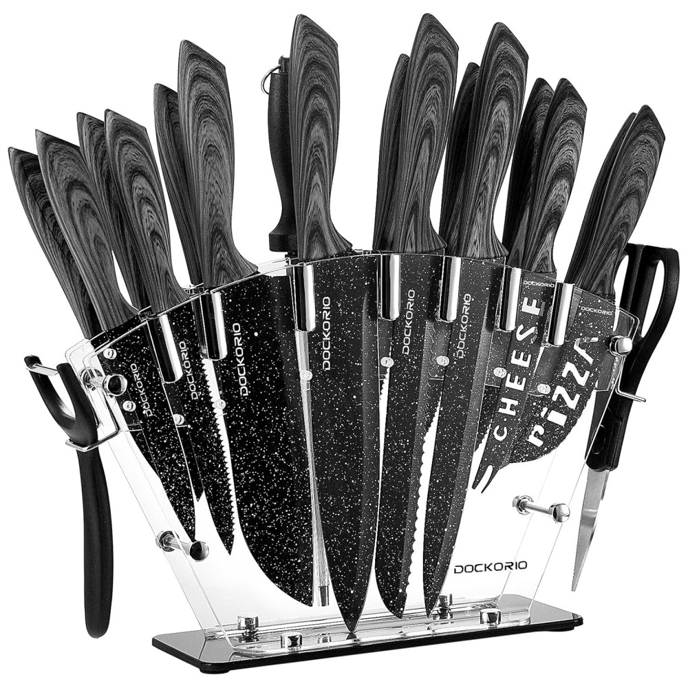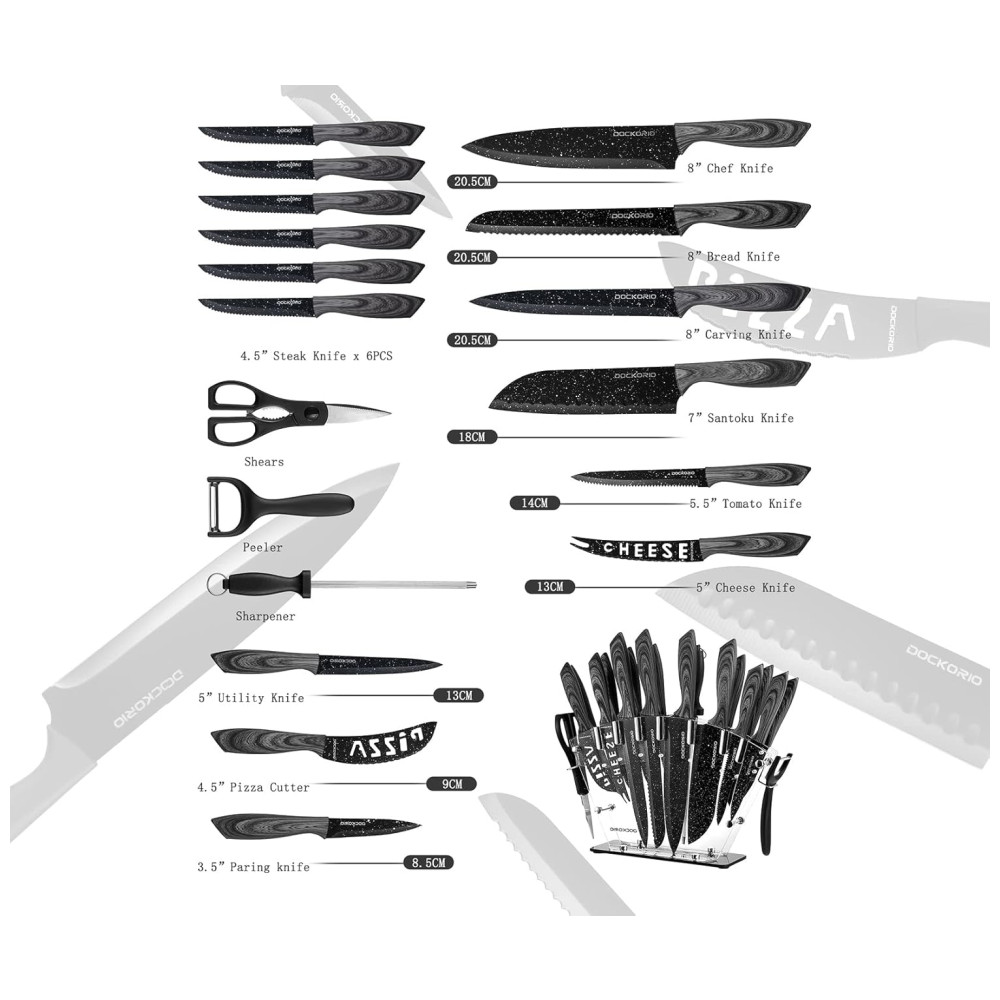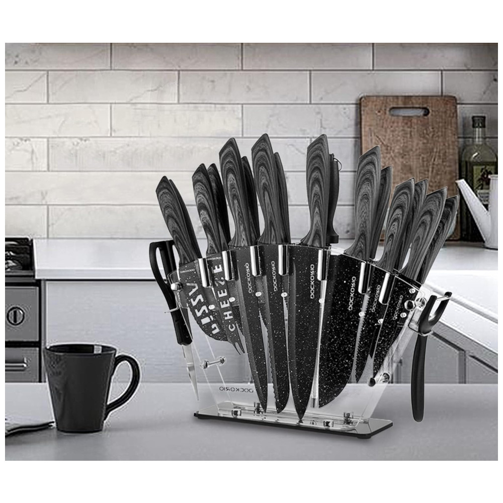 Conjunto de Facas em Aço Inoxidável com Bloco de Bancada Peças DOCKORIO knife set 19 601 Grey Cinza
