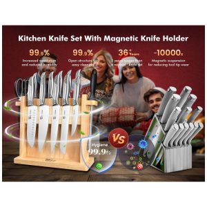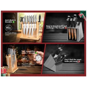 Princípio cuidadoso de não dumping: O porta faca magnético convencional enfatiza o aumento da força magnética, ao mesmo tempo que desconsidera o risco de inclinação do porta faca quando uma faca é removida
