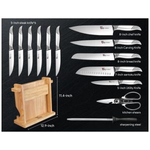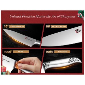 Domine a arte da nitidez: este conjunto de facas japonesas surge antes dos indispensáveis processos de fabricação de 56 etapas, a nitidez origina se de nossa concentração em cada etapa da fabricação de precisão. Com design de aparência inovador e exclusivo e excelente retenção de fio, a escolha deste conjunto de facas não irá decepcioná lo.