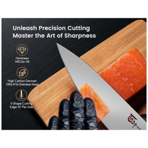 Alça confortável e antiderrapante: o design ergonômico do contorno do cabo da faca é confortável de segurar e a mão não sentirá nenhum desconforto mesmo após o uso prolongado. O design exclusivo do ponto de pulverização é antiderrapante para garantir um uso . A alça confortável e antiderrapante significa que você pode cortar ou fatiar com confiança e sem forçar as mãos.