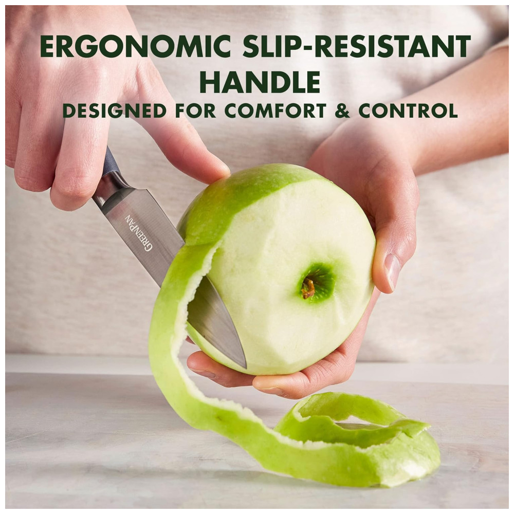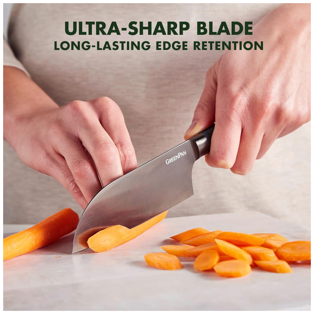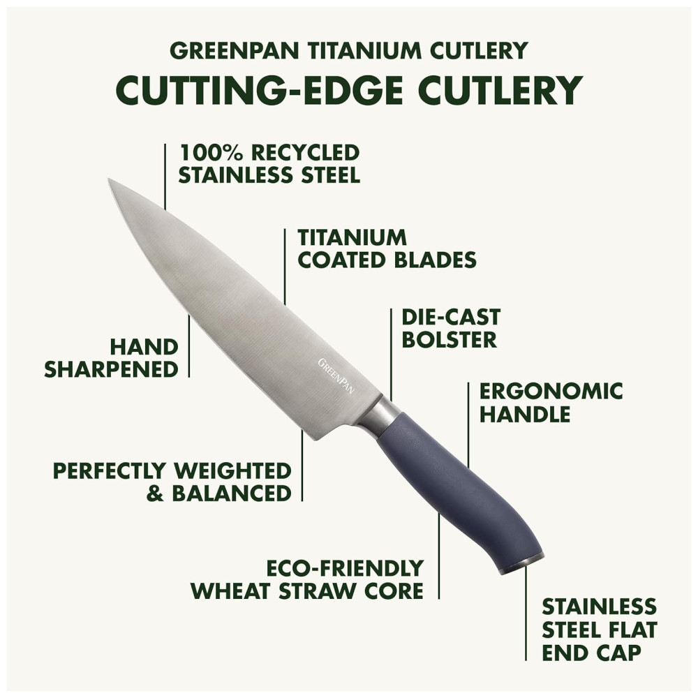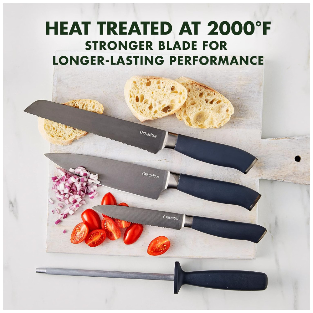 Conjunto de Facas em Aço Inoxidável Revestido de Titânio com Bloco de Bancada e Cabo Ergonômico 16 Peças GreenPan Cinza