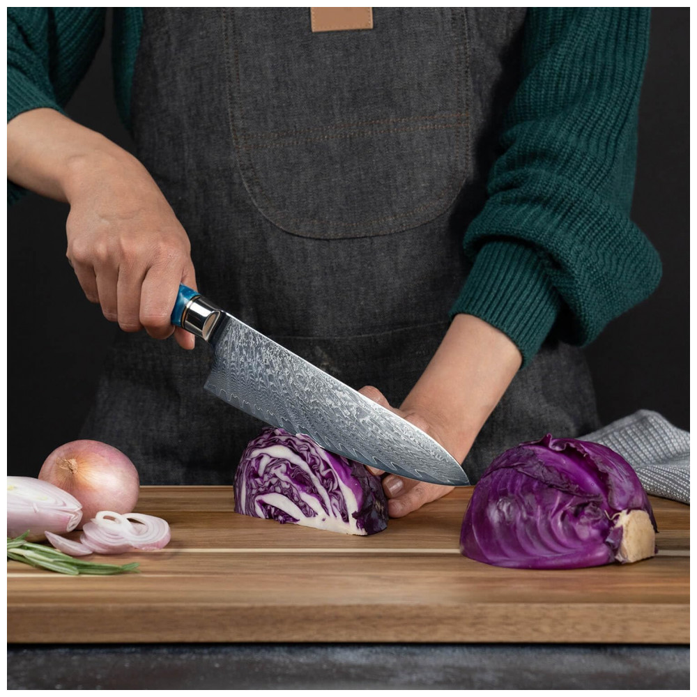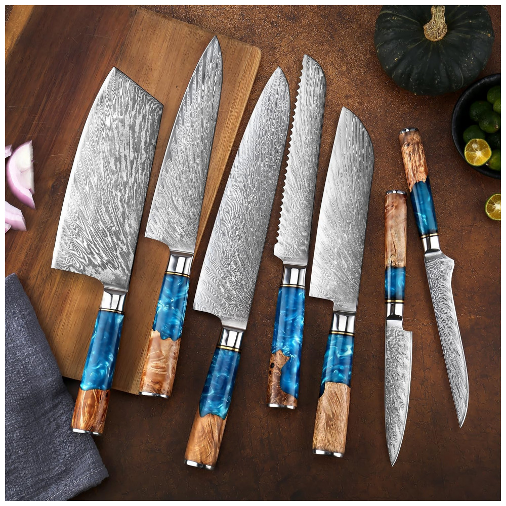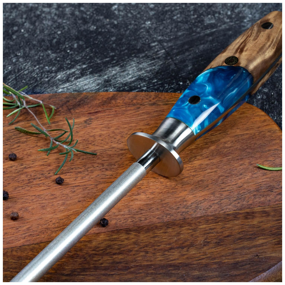 Belo design de cabo Cada faca é projetada com uma resina azul única e um padrão de madeira natural que adicionará um toque lindo e dará vida à sua cozinha