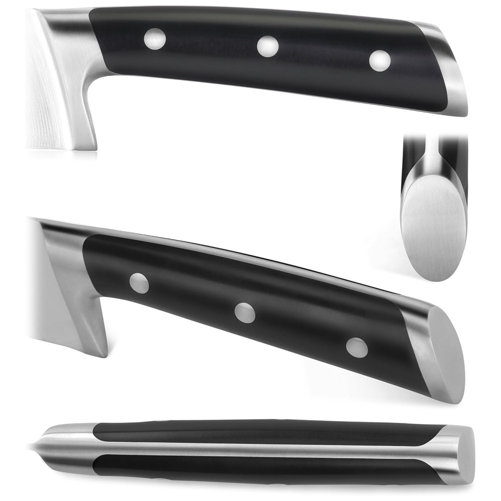 Tratamento Térmico de Estágio Ultra6: Cada lâmina passa por um tratamento térmico de estágio ultra6, assegurando que cada lâmina mantenha sua força e funcionalidade. Elas mantêm uma borda até 5 vezes mais longa do que o aço alemão.