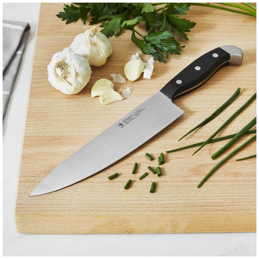 Inclui faca de aparar , Santoku, faca de pão, seis facas para bife, aço de afiar Bloco de madeira marrom escuro edição especial com acabamento rico Fabricado em aço inoxidável de alta qualidade Peça única , a construção da lâmina carimbada com precisão fornece durabilidade A lâmina profissional com acabamento acetinado possui corte de precisão e é afiada para proporcionar nitidez duradoura. Tamanho 12 pc Set Cor Marrom escuro. O conjunto de facas para facas de 12 unidades da Henckels International Statement é abastecido com ferramentas para lidar facilmente com as tarefas da sua cozinha. Afiadas pela nitidez duradoura, as lâminas de ponta fina possuem corte de precisão