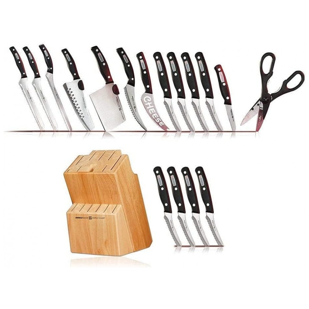 O conjunto de facas Miracle Blade World Class Series inclui 18 peças de faca com bloco de facas.
