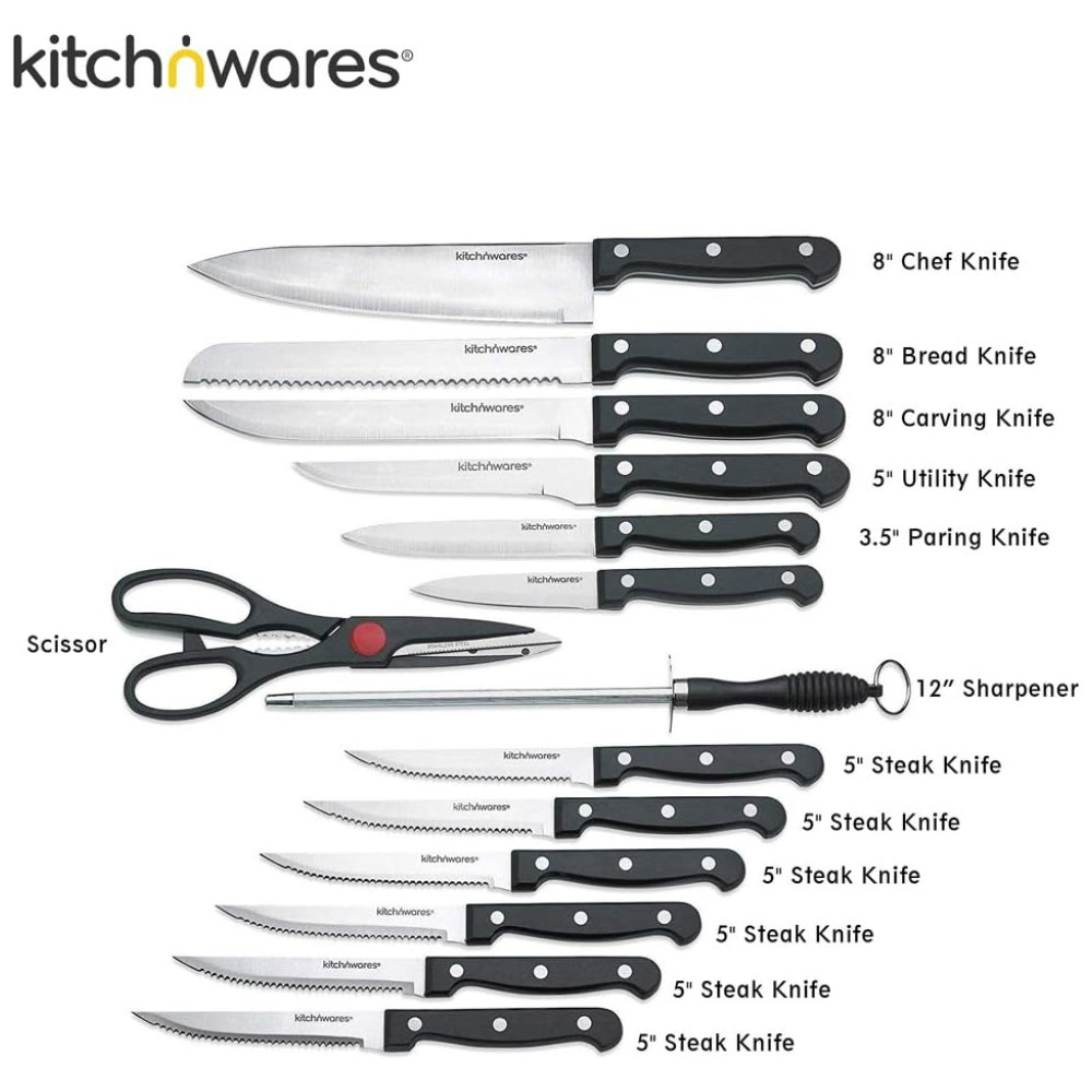 Conjunto de Facas N 15 Peças Aço Inoxidável KITCH N WARES 5155500 Preto