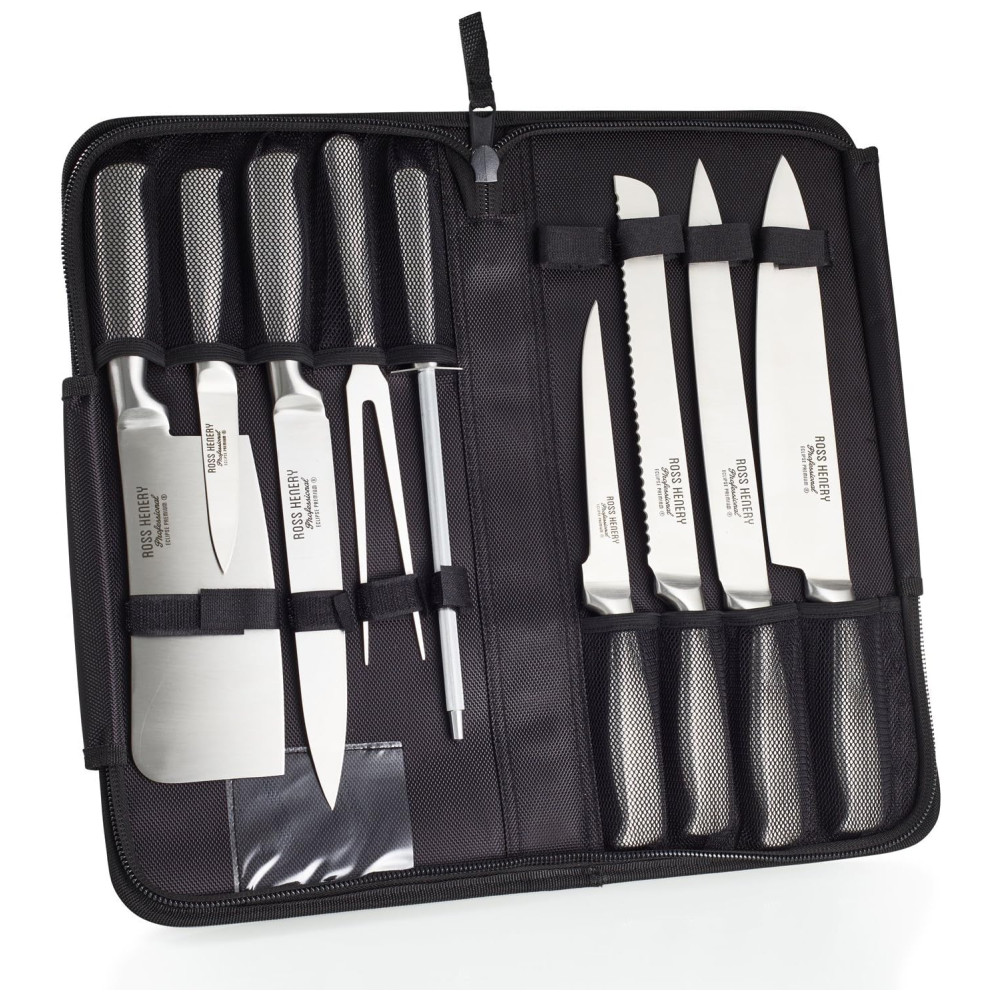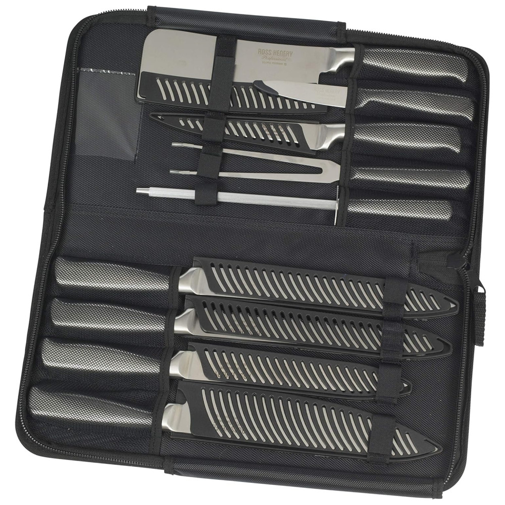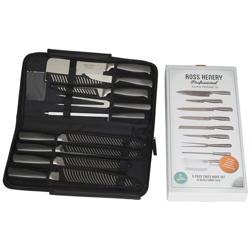 Conjunto de Facas Profissional Eclipse Premium em Maleta Em Aço Inoxidável 9 Peças Grafite escuro ROSS HENERY PROFESSIONAL Cinza escuro