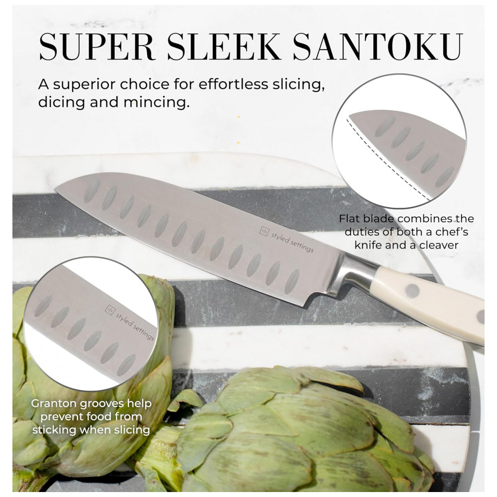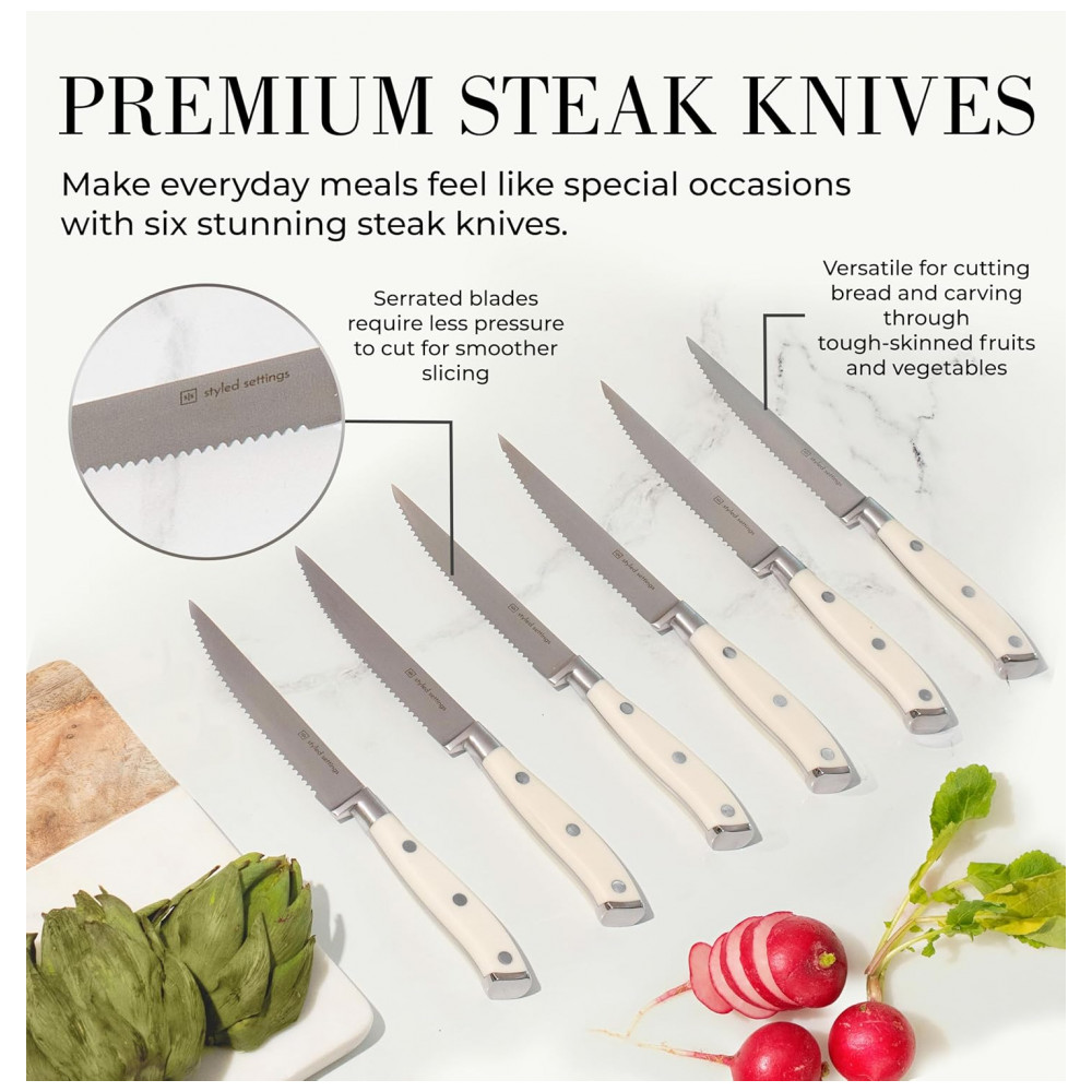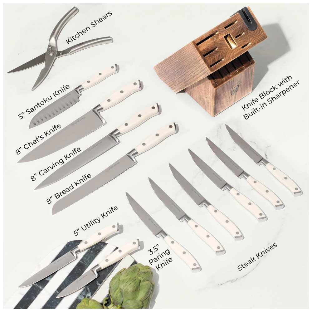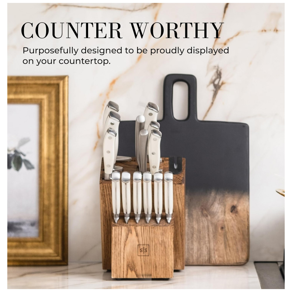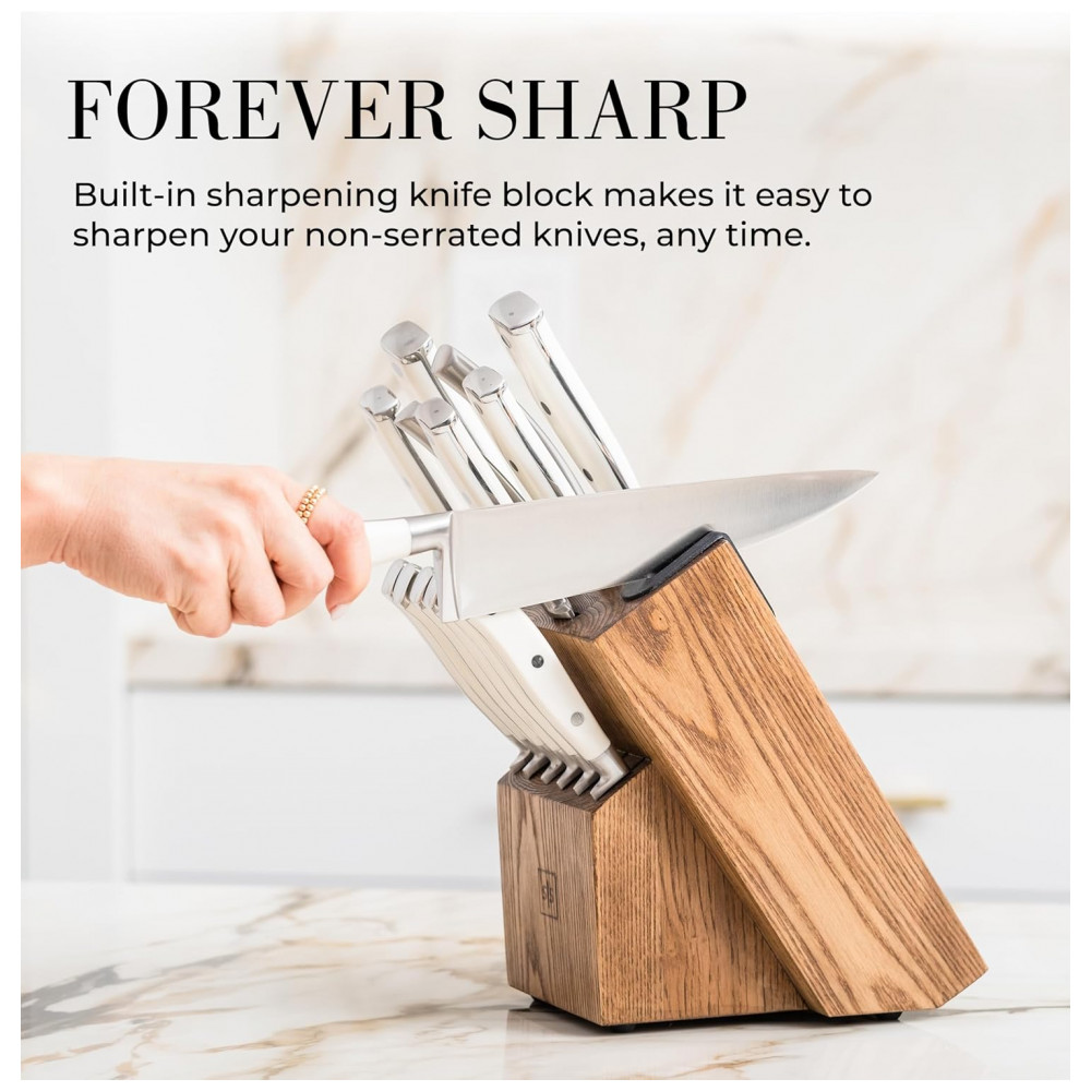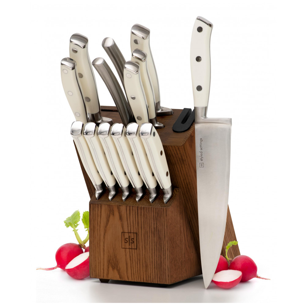 Conjunto de Facas STYLED SETTINGS em Aço Inoxidável com Bloco de Bancada e Afiador Embutido 14 Peças Branco